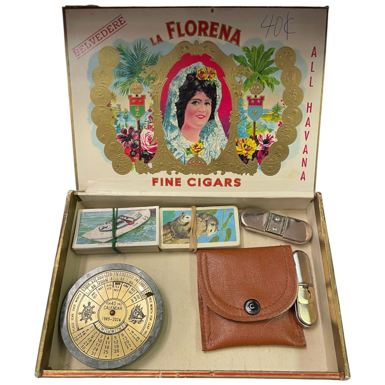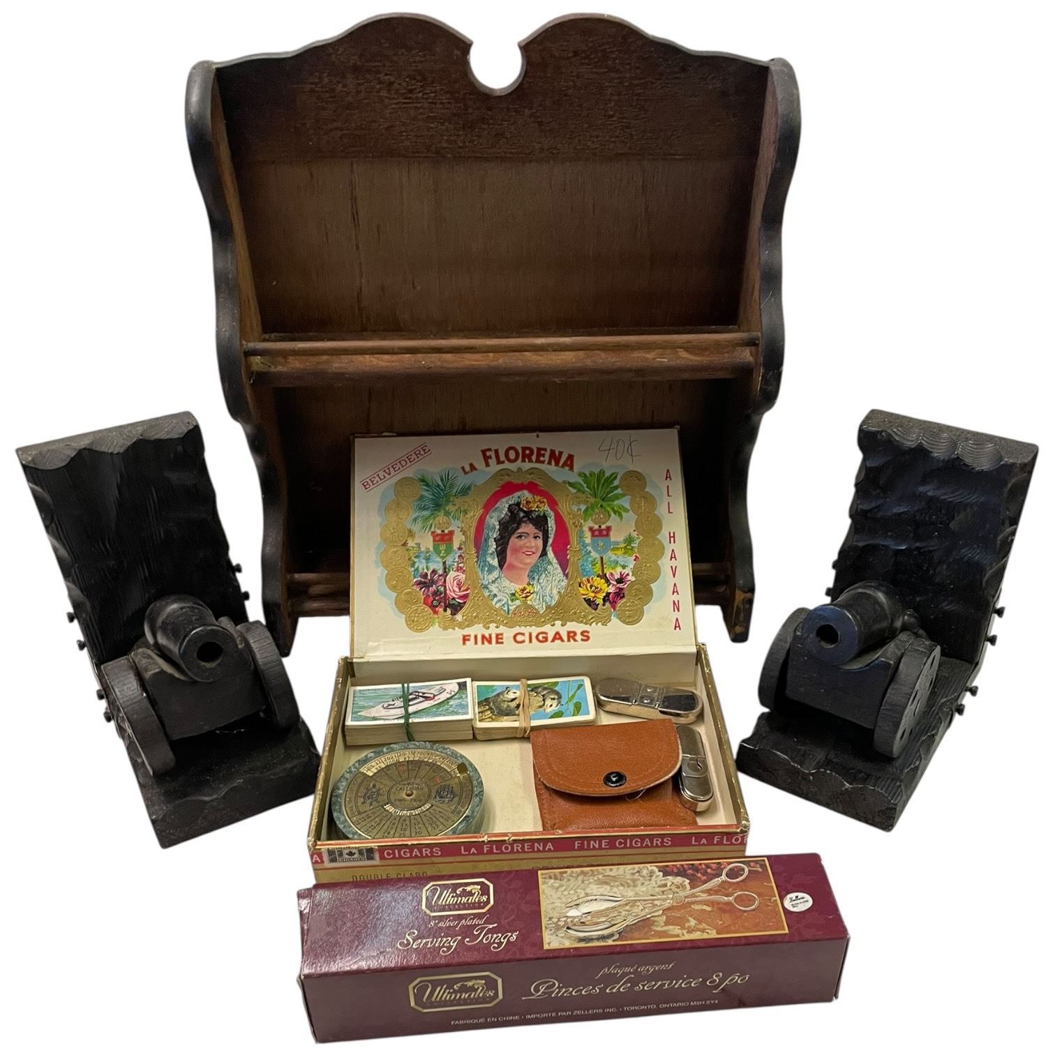 Lot 784 Group of Cannon Bookends, Cigarette Cards, Meter, Cigar Box and More