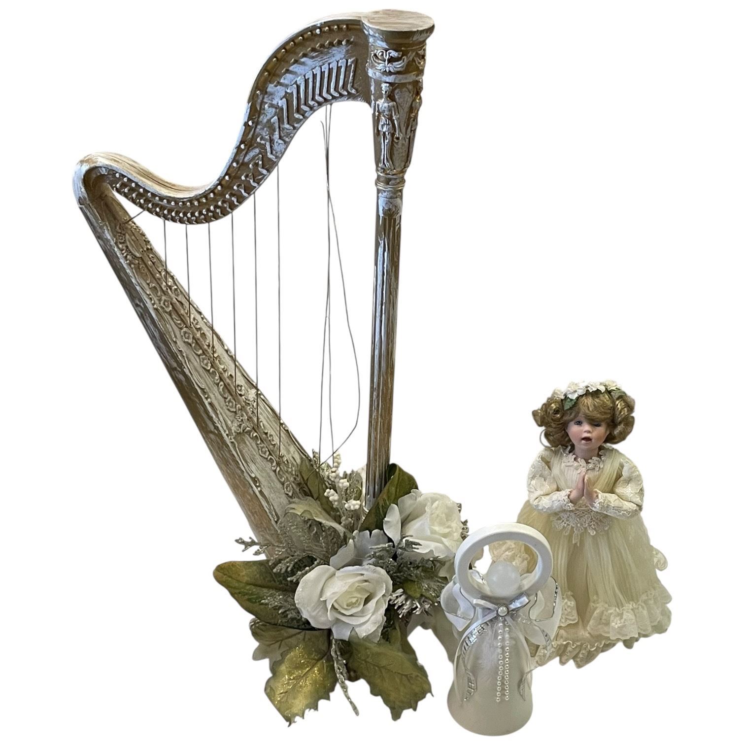Lot 787 24" Tall Harp Decoration and 2 Angel Figurines