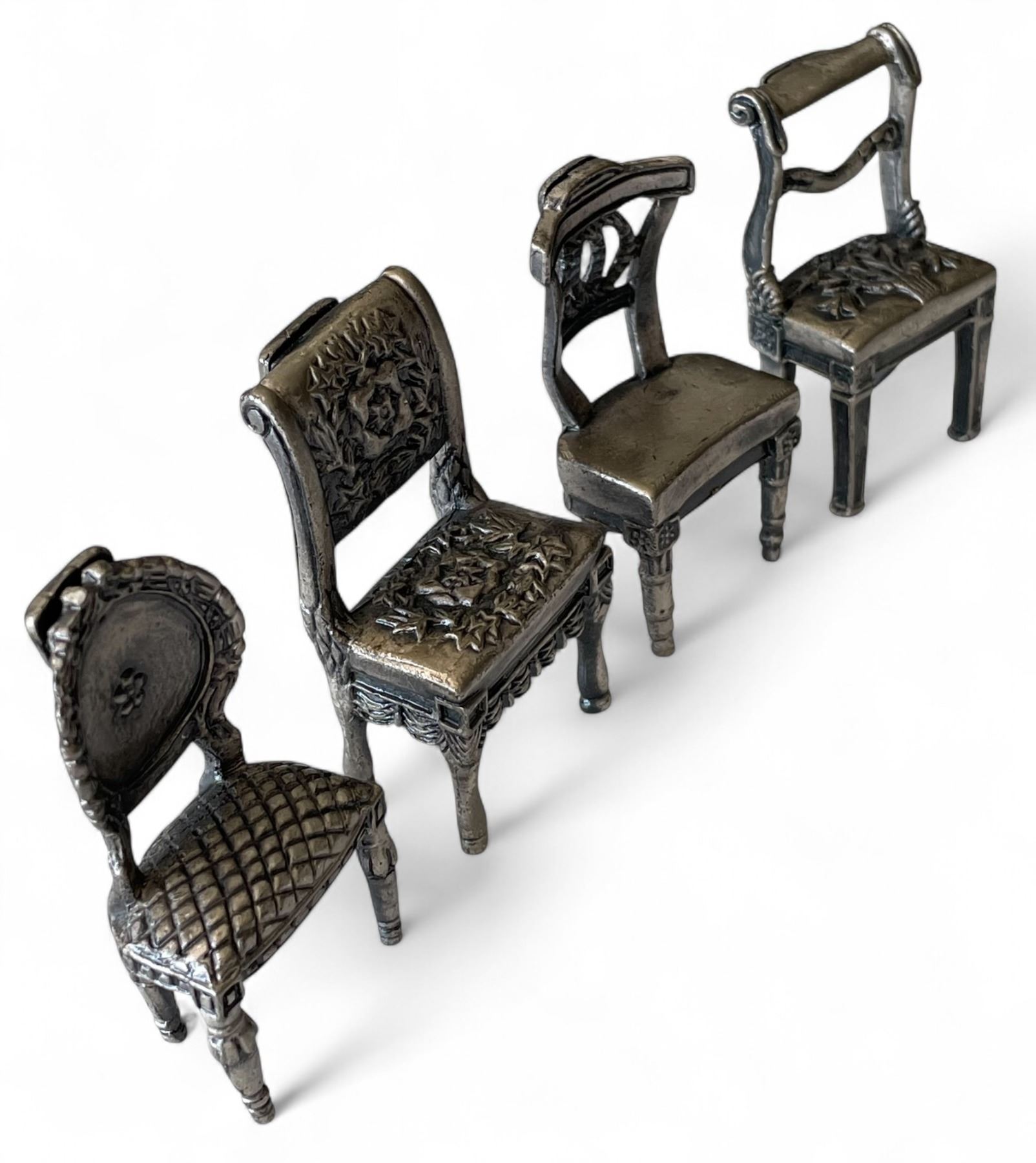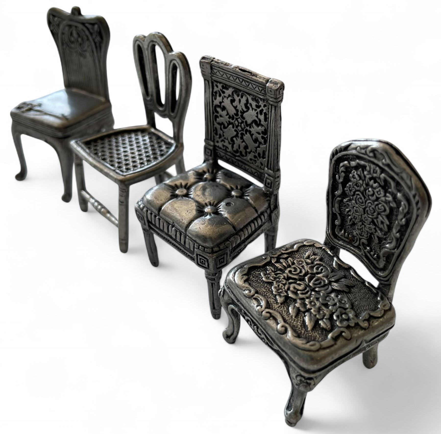 Lot 347i 1960-70s Dress Up Dolls (2) and Group of Vintage Miniature Pewter Dollhouse Furniture Chairs