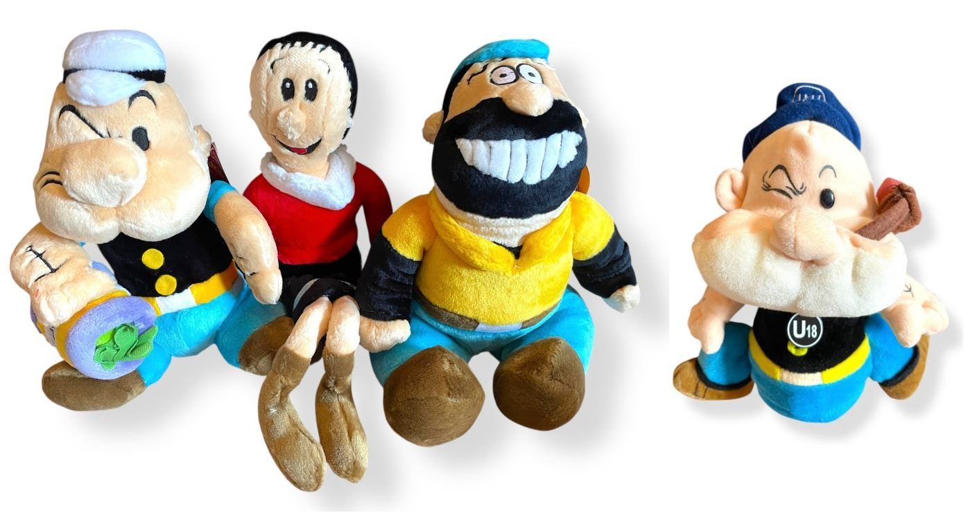 Lot 347l Set of 3 Popeye Plush and Poopdeck Pappy Hand Puppet