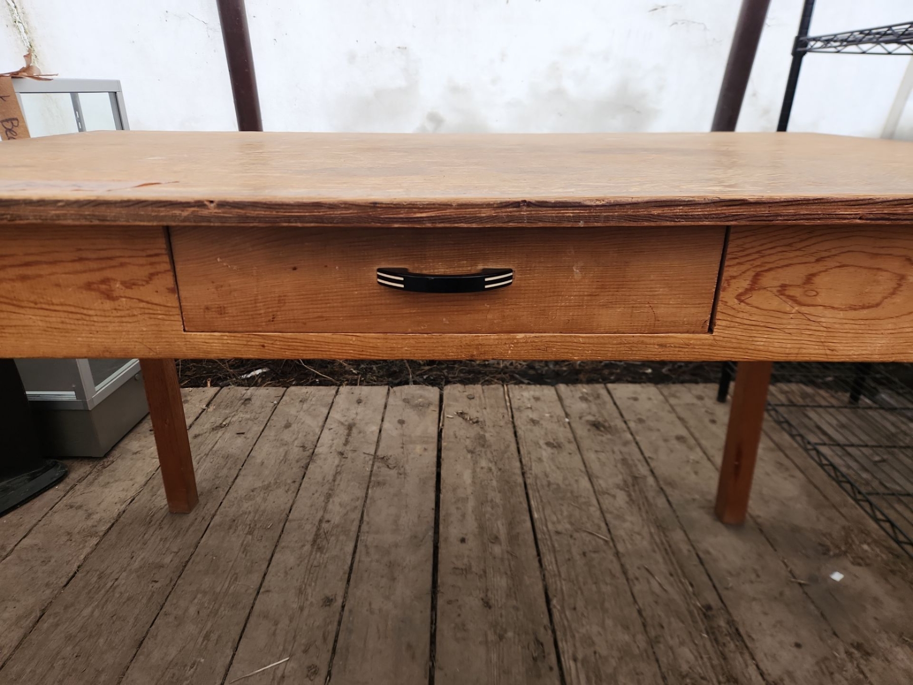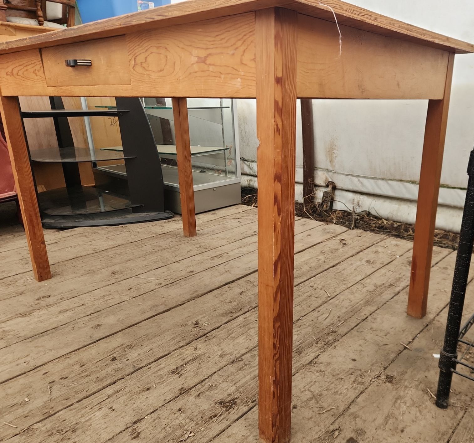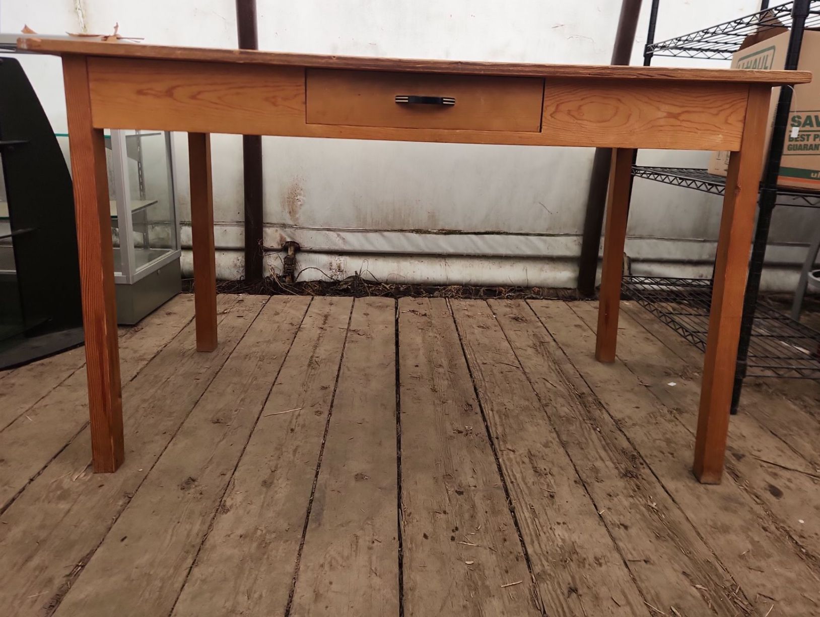 This charming rustic wooden desk or farm table features a sturdy construction and a single drawer for convenient storage. Its classic design adds warmth and character to any workspace, kitchen, or dining area.