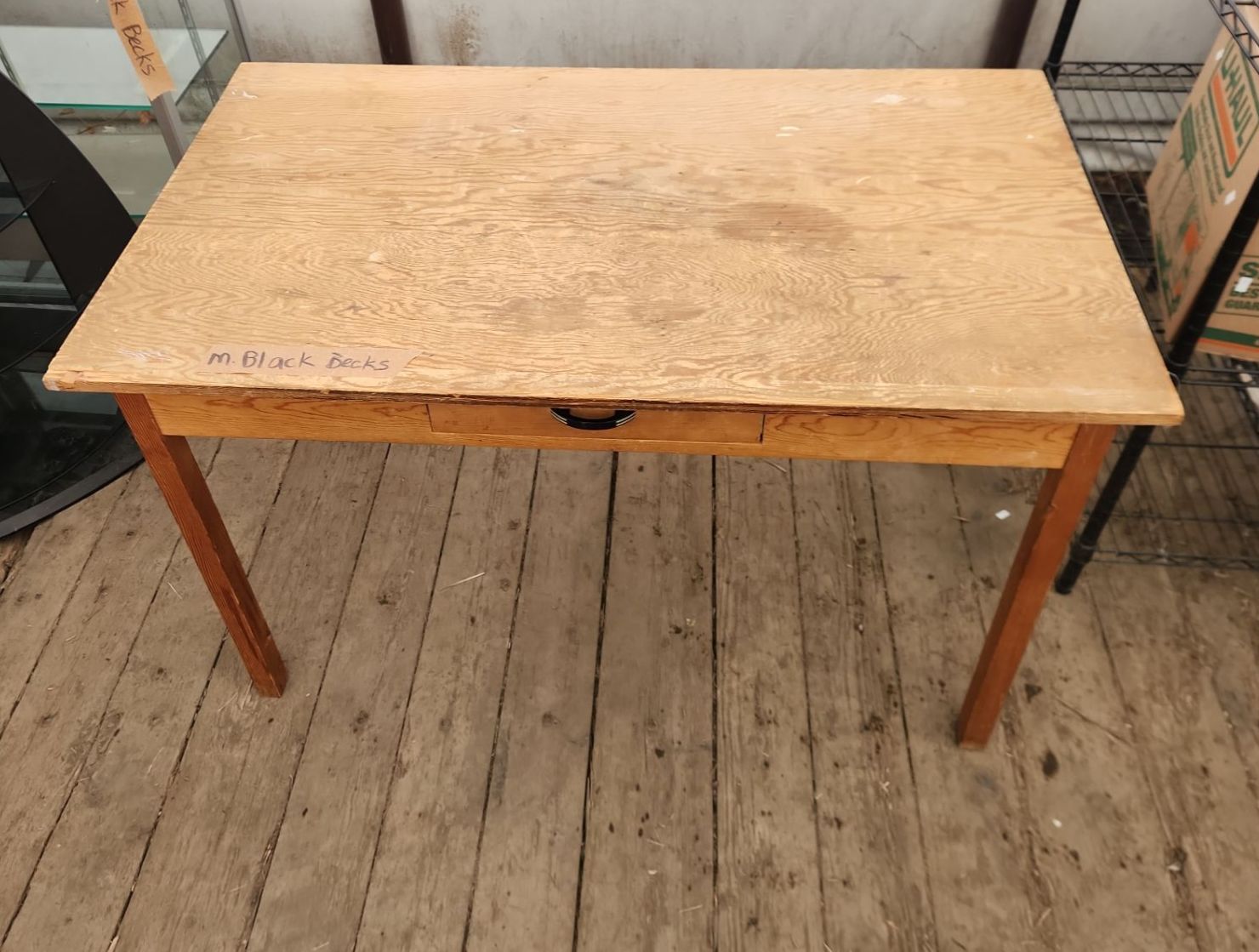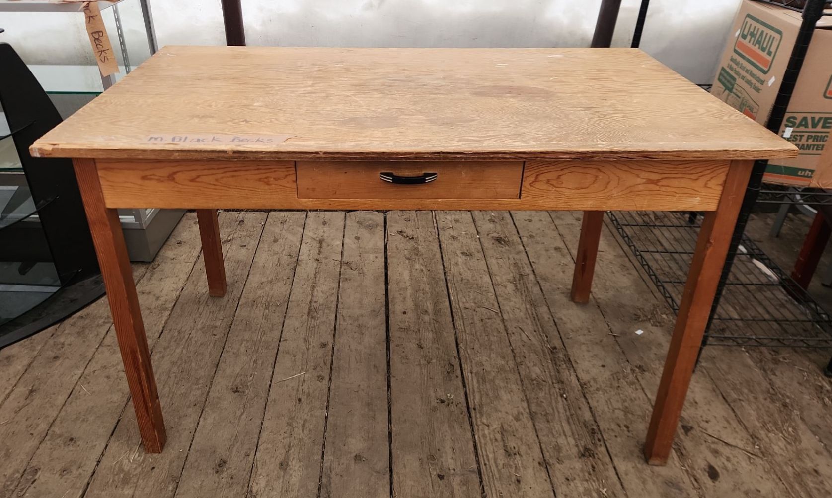 Lot 16 Rustic Wooden Desk/ Farm Table with Singular Drawer- 50"W x 30"D x 30"H