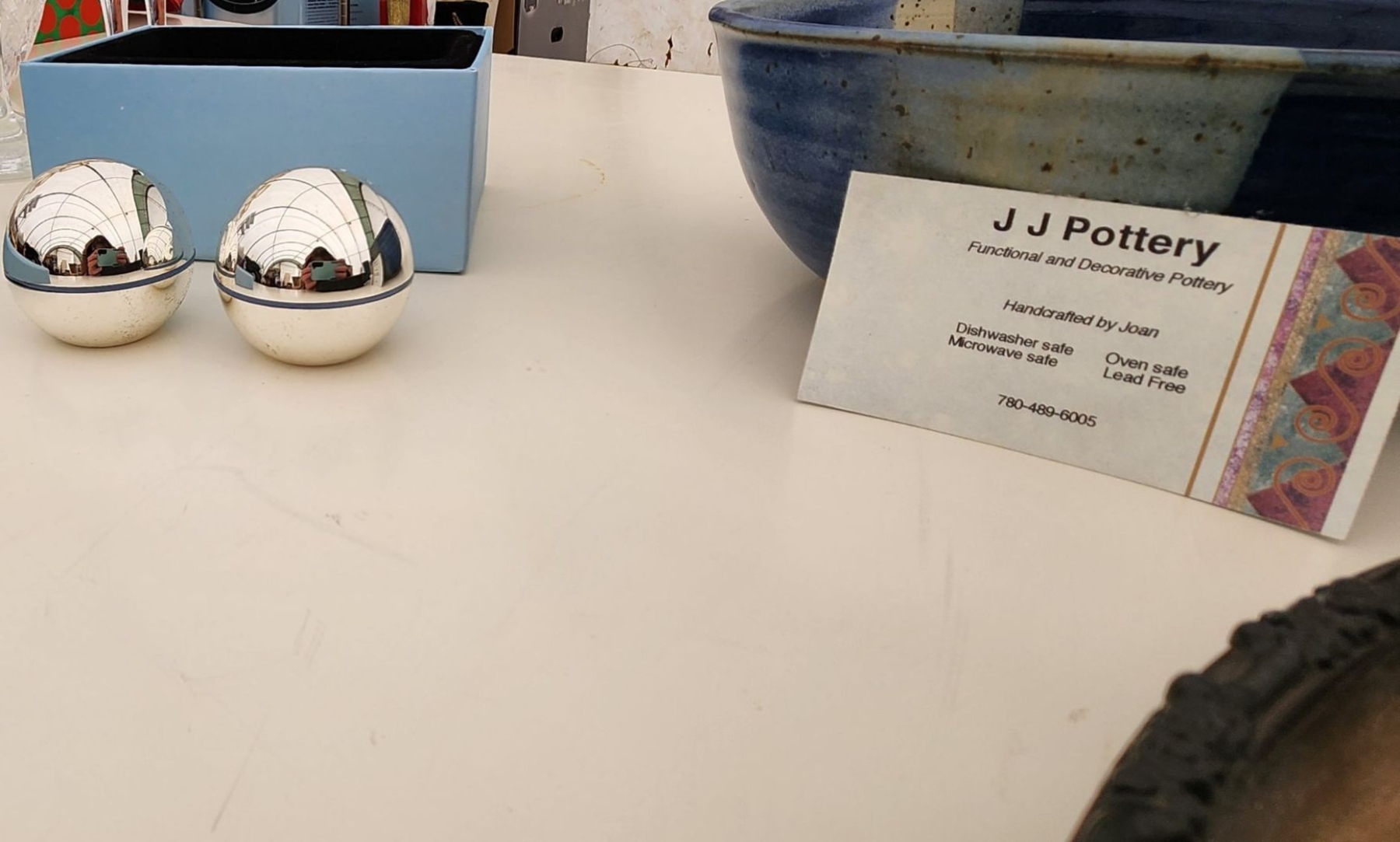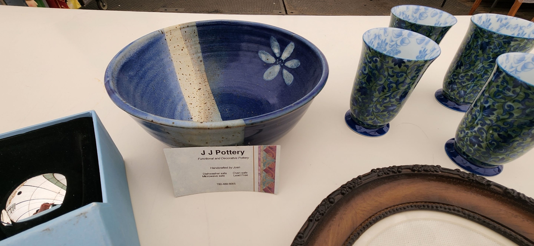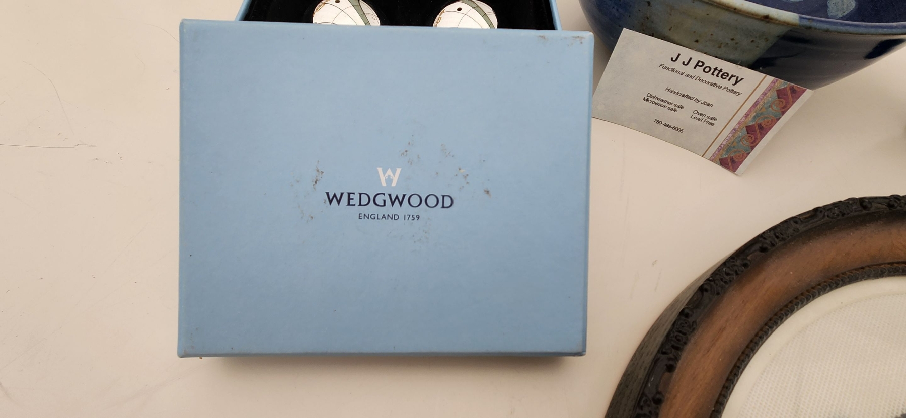 Lot 20 Stylish Home Decor! Vintage Cross Stitch Art, Wedgewood Mirror S&P Shakers, Pottery Bowl, Tea Cups