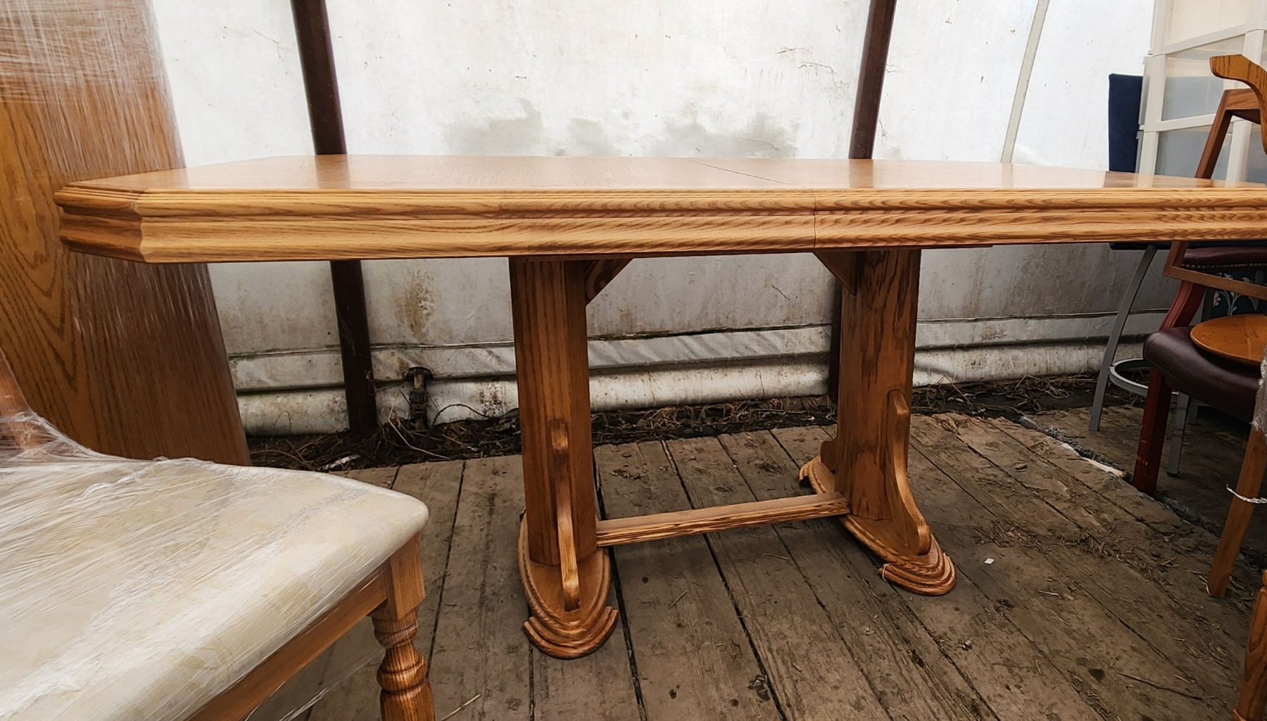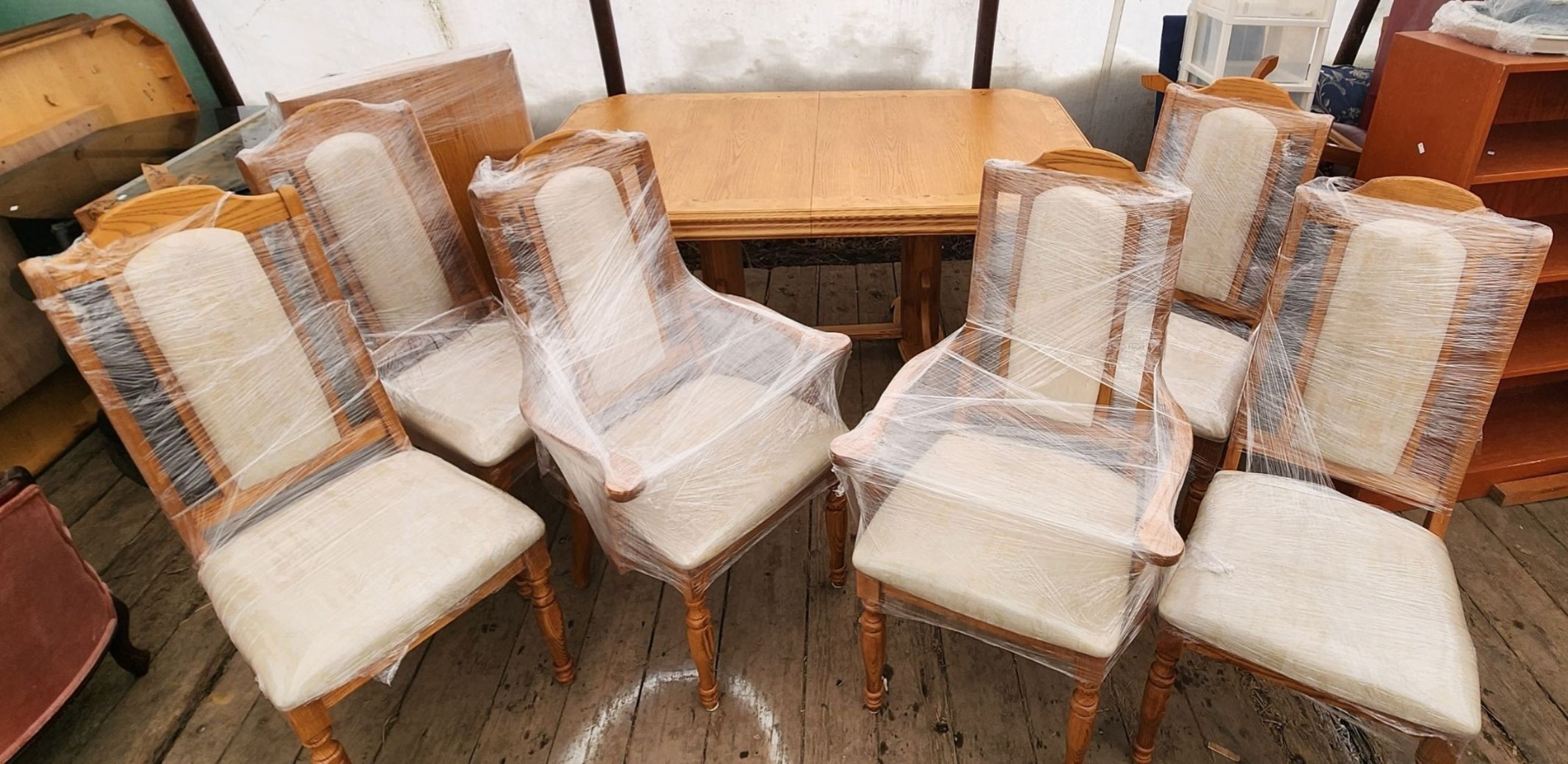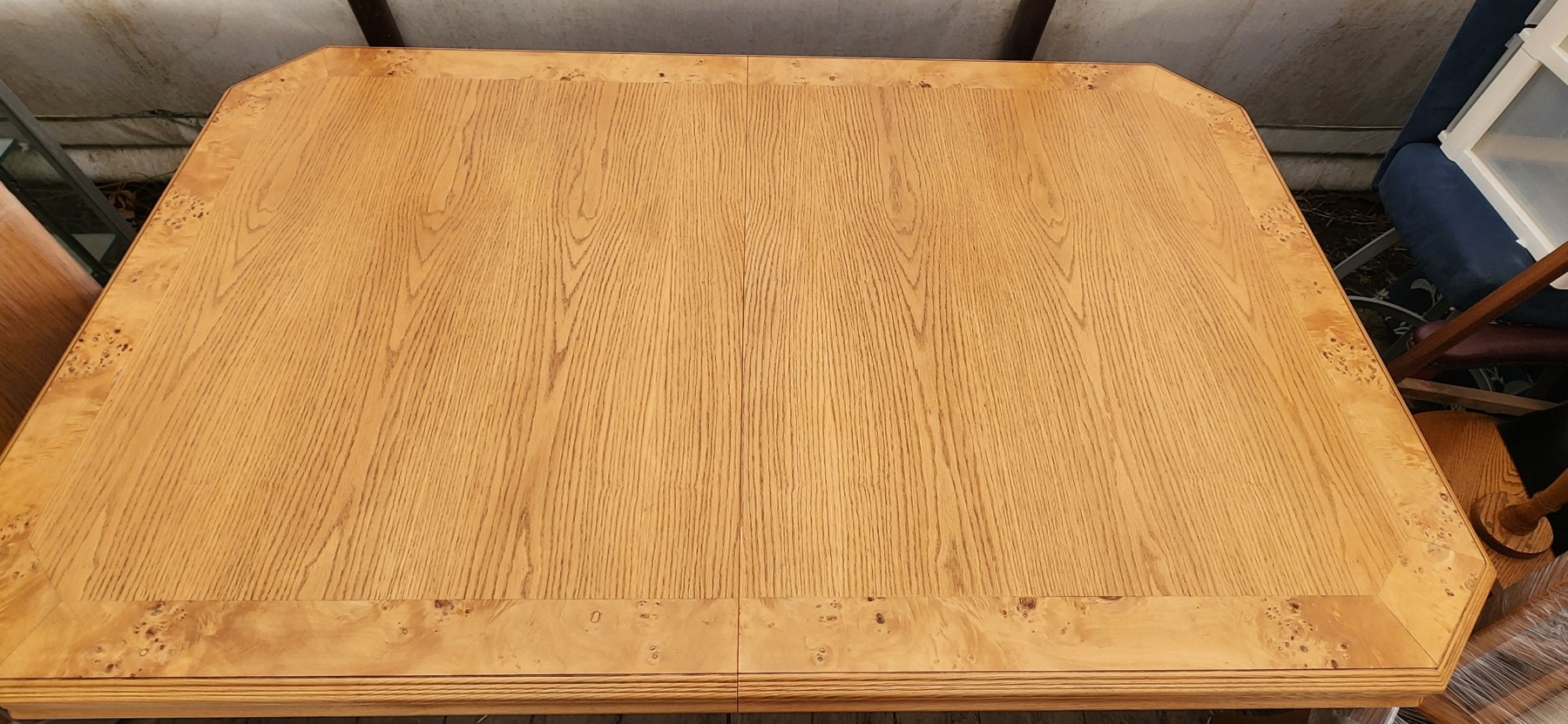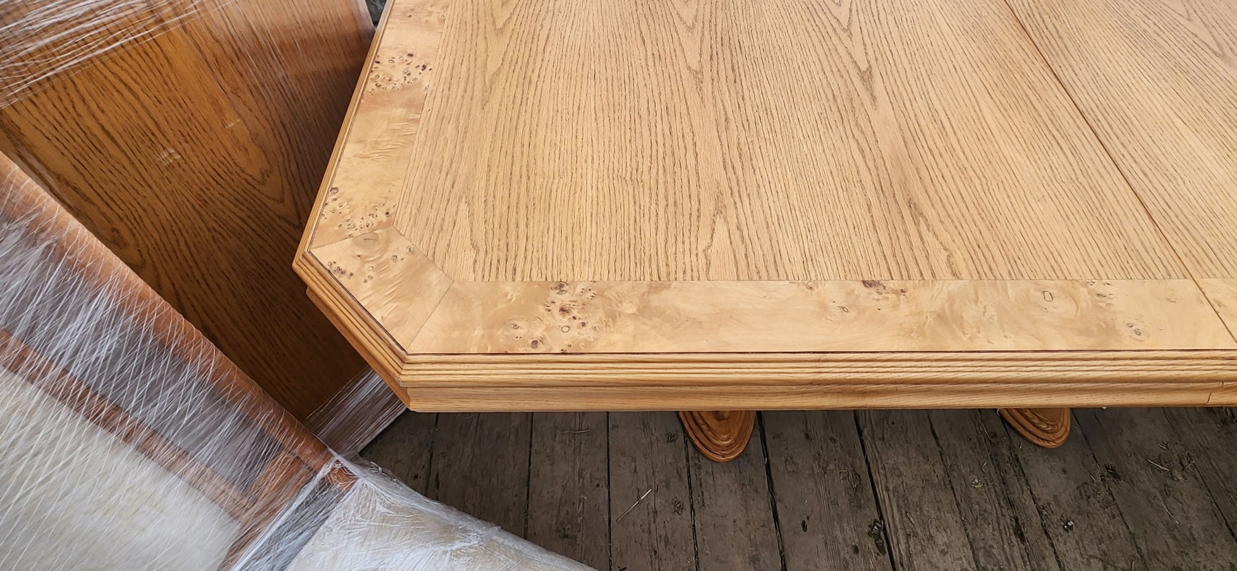 This stunning bird's eye maple dining table comes with a 24" leaf and six matching chairs, offering both elegance and versatility. Its classic craftsmanship and warm finish make it perfect for family meals, entertaining, or adding a timeless centerpiece to your dining room.