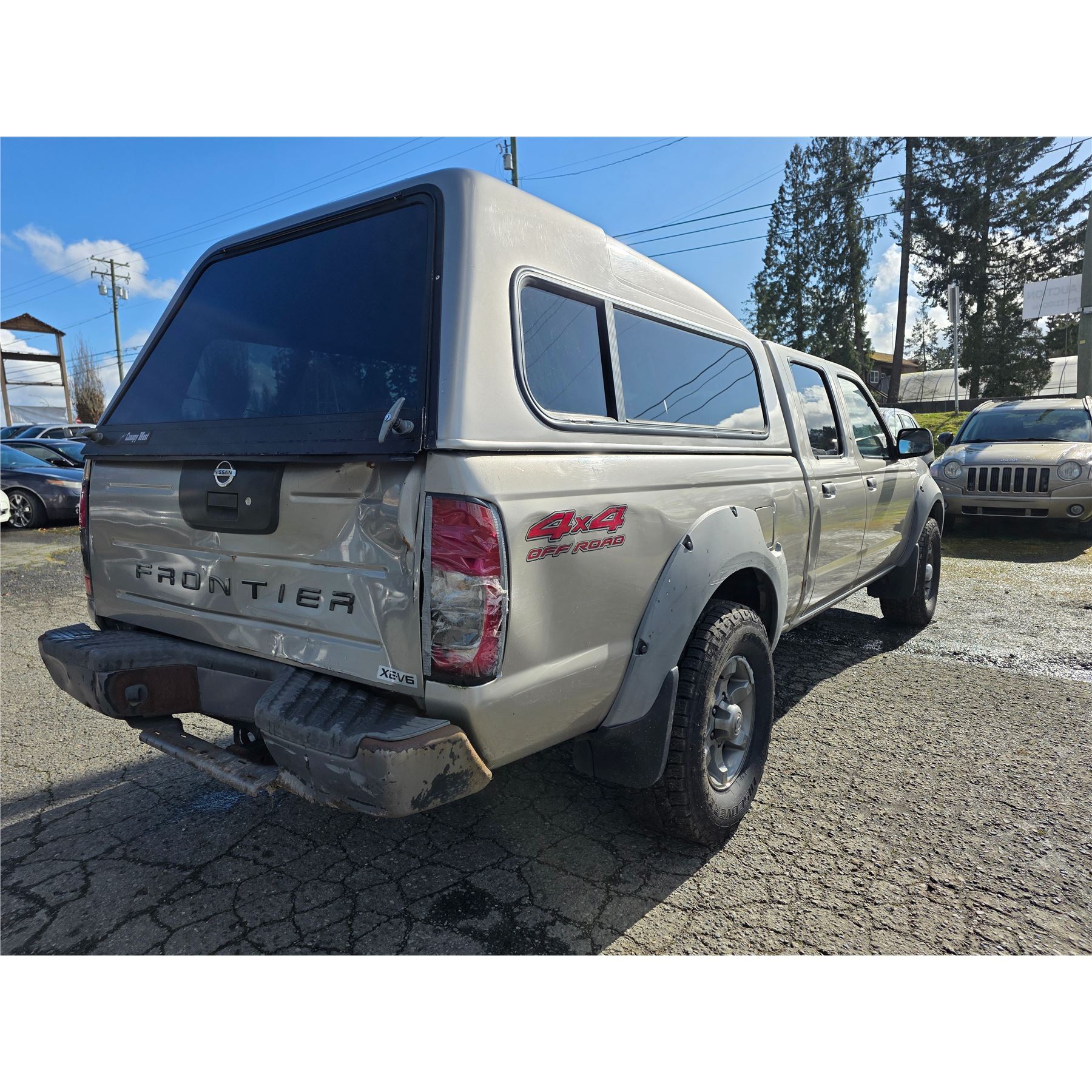 2003 NISSAN FRONTIER 361863 KMS 3.3L GASOLINE AUTOMATIC 4WD 5 PASSENGERS AIR CONDITIONING, POWER WINDOWS, TILT STEERING, CRUISE CONTROL, DUAL AIR BAGS, CD PLAYER, CANOPY, ALLOY WHEELS EX-LEASE DESIGNATIONS 2 ACCIDENT 1 GLASS CLAIM TOTALING $ $2118 NOT MECHANICALLY INSPECTED, NOT SUITABLE FOR TRANSPORTATION. MUST TOW. 23 RECORDS OF SERVICE