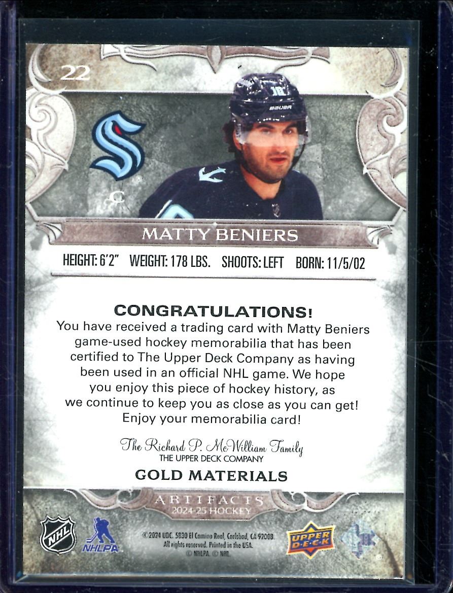Lot 414 2024-25 Artifacts Materials Gold #22 Matty Beniers 120/299