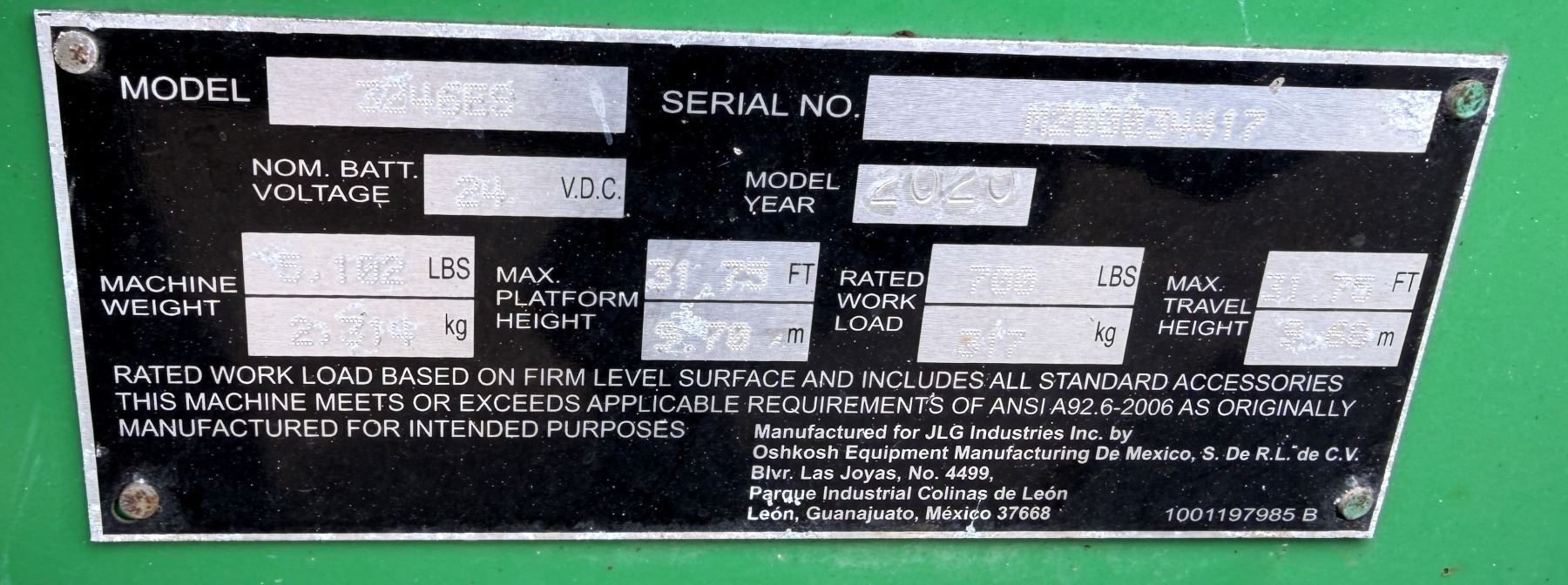 Lot 3 (10273850) MAUI 2020 JLG 3246ES Electric Scissor Lift (Runs & Lifts - See Video)