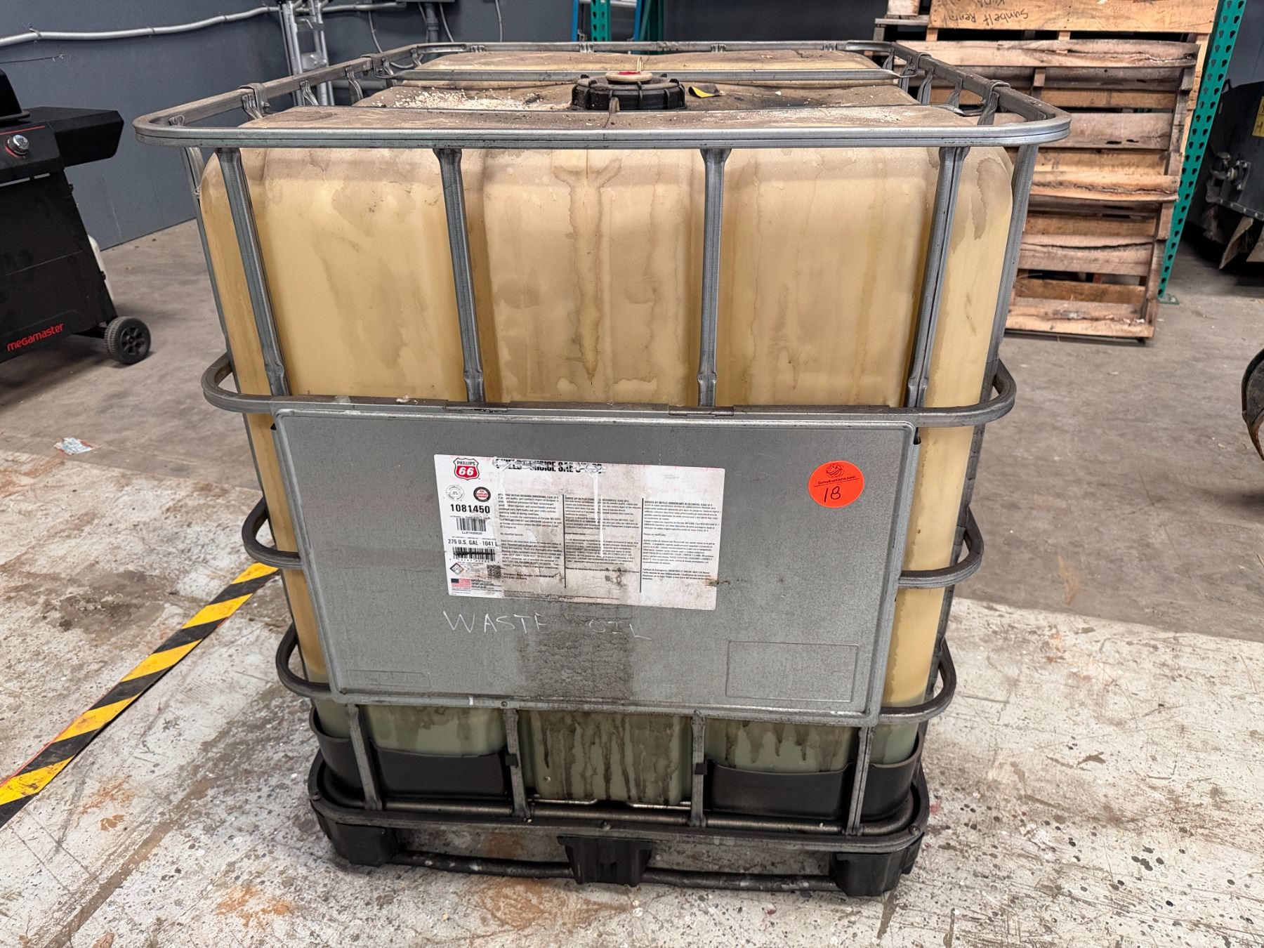 Lot 18 275-Gallon Intermediate Bulk Container (IBC) Tote (Used For Oil Waste)