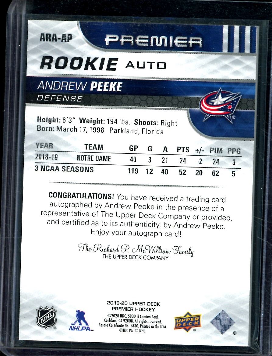 Lot 433 2019-20 Upper Deck Premier Acetate Rookie Autographs Andrew Peeke 71/149