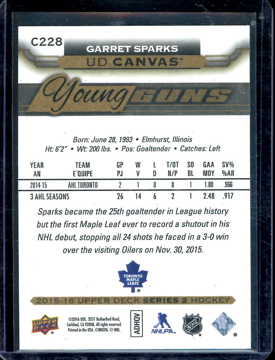 Lot 437 2015-16 Upper Deck Canvas #C228 Garret Sparks YG
