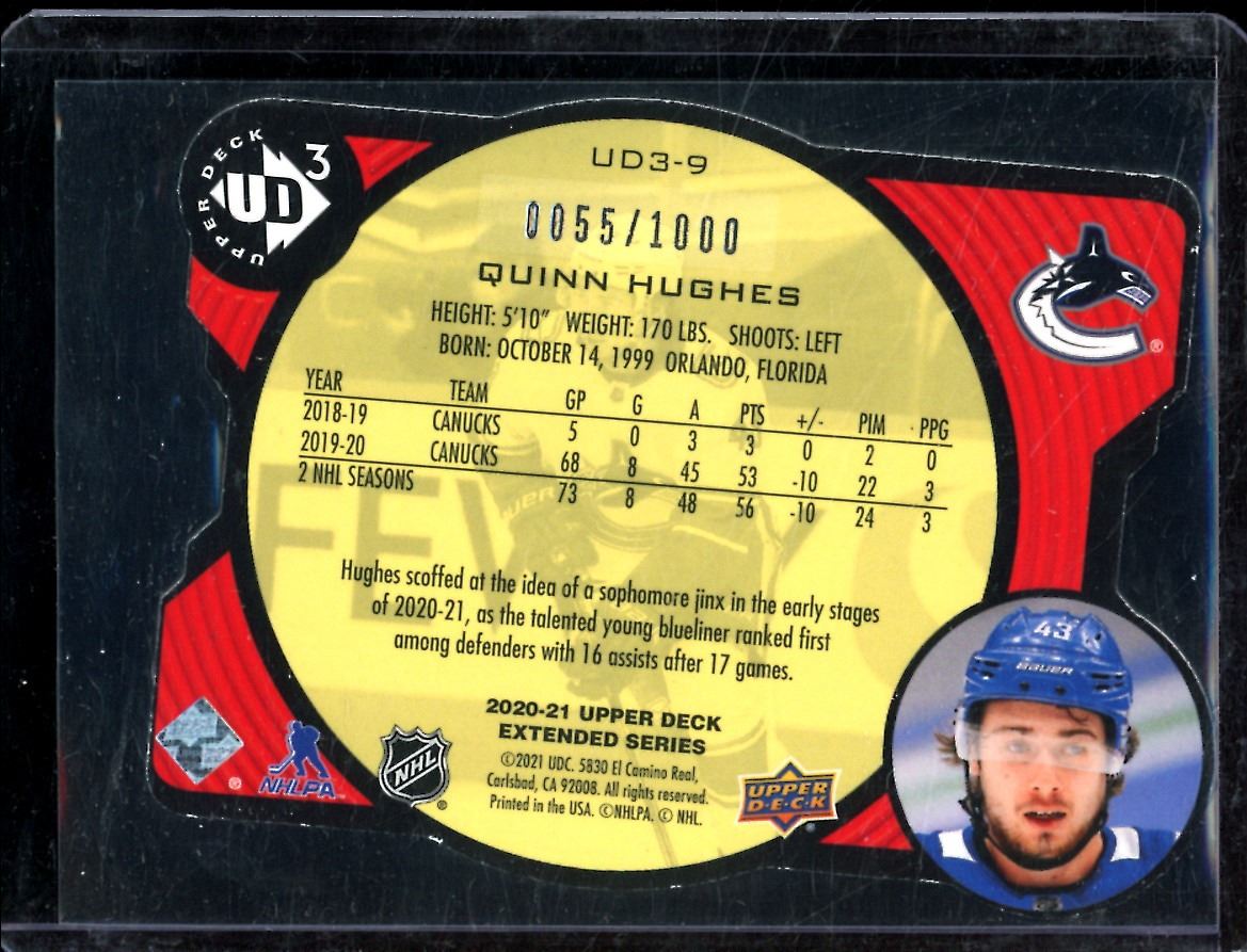 Lot 438 2020-21 Upper Deck UD3 #UD39 Quinn Hughes 55/1000