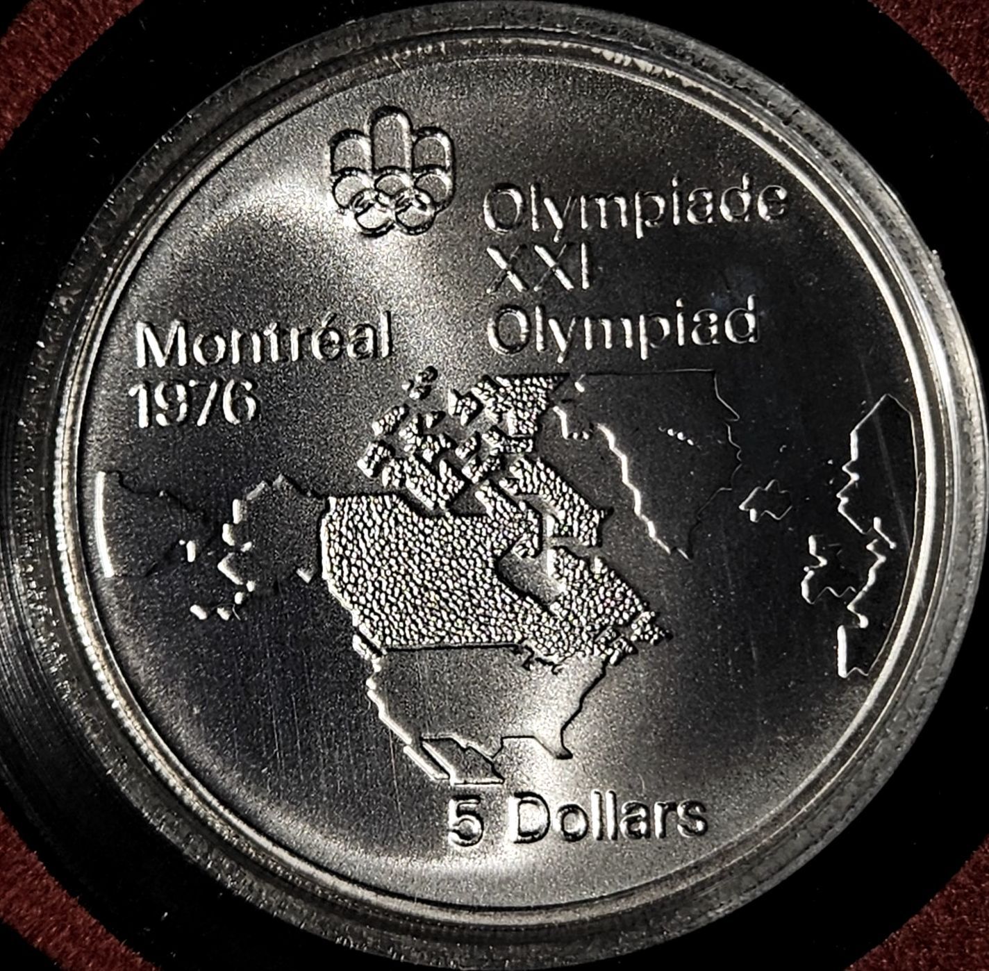 Lot 43 1973 $5 Montreal Olympics - Map of North America 92.5% Sterling Silver Coin