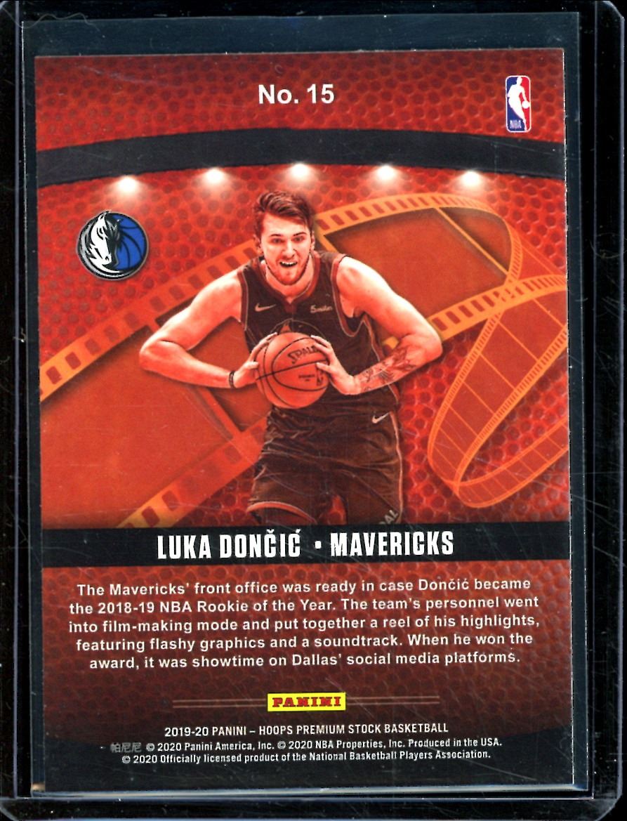 Lot 456 2019-20 Hoops Premium Stock Lights Camera Action #15 Luka Doncic