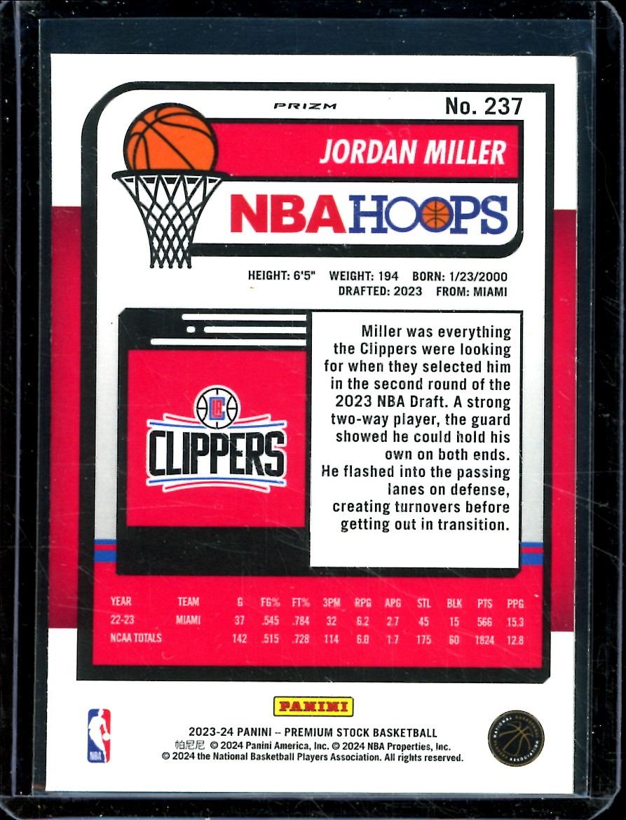 Lot 464 2023-24 Hoops Premium Stock Ice Prizm #237 Jordan Miller