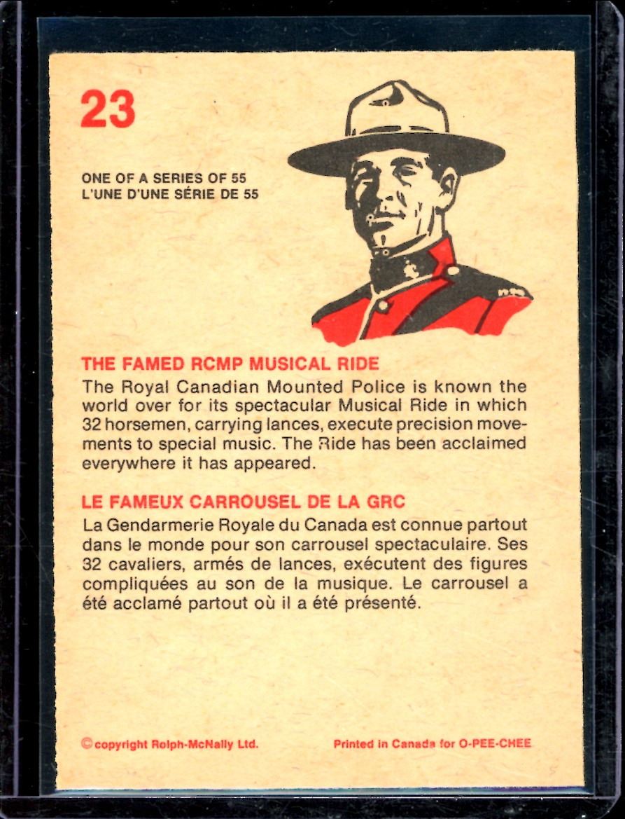Lot 701 1973 O-Pee-Chee Royal Canadian Mounted Police Centennial #23 The Famed RCMP Musical Ride