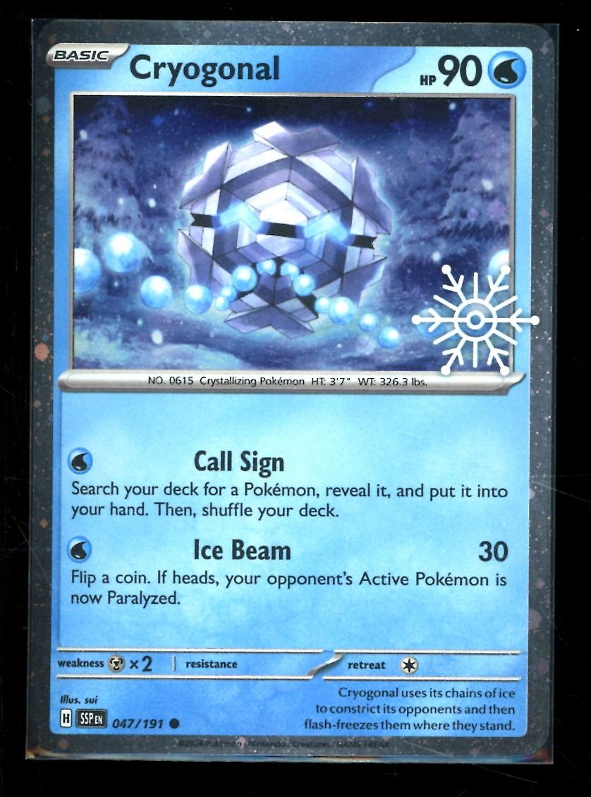 Lot 813 Pokemon Cryogonal 047/191 Holiday Calendar Snowflake Stamped Promo Holo