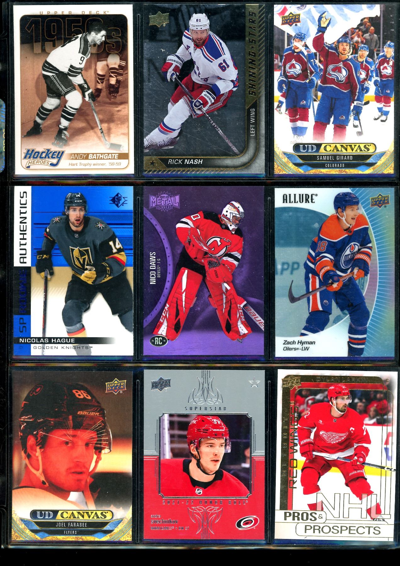Lot 641 Lot of 9 Various Hockey Inserts or Rookie Cards Various Teams & Players