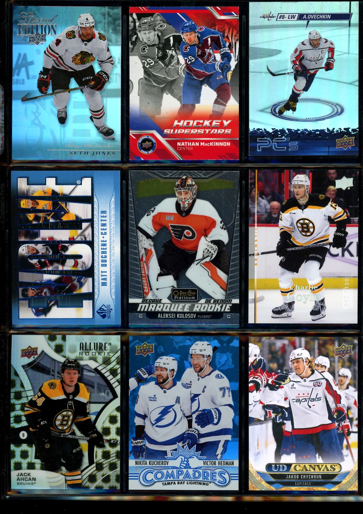 Lot 634 Lot of 9 Various Hockey Inserts or Rookie Cards Various Teams & Players