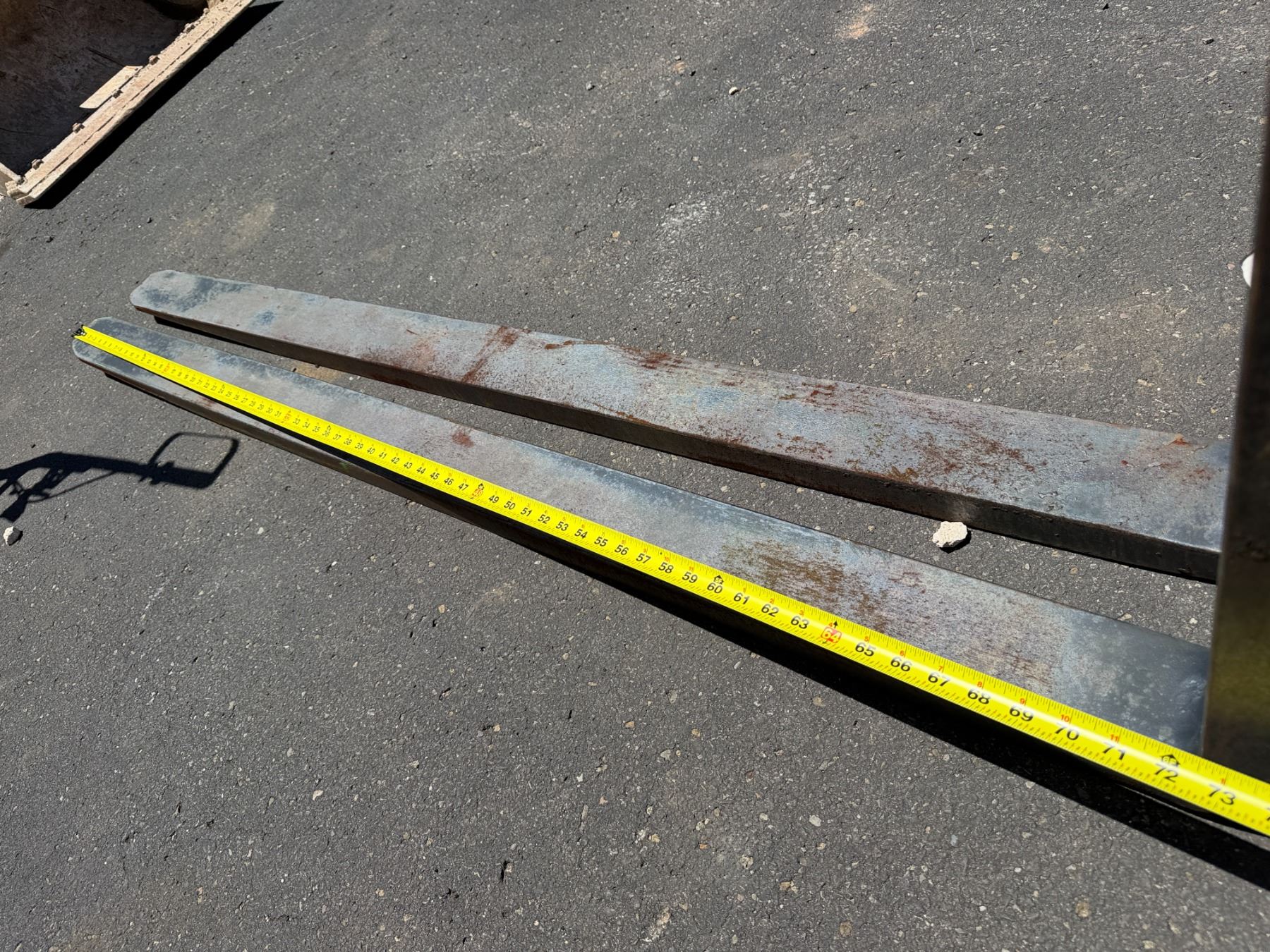 Qty 2 Forklift Forks. Seller reports these forks have been stored in the yard and have not been used.
