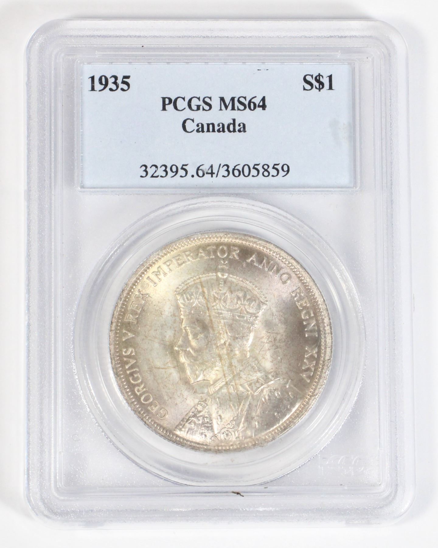 1935 CANADIAN SILVER DOLLAR GRADED PCGS MS64