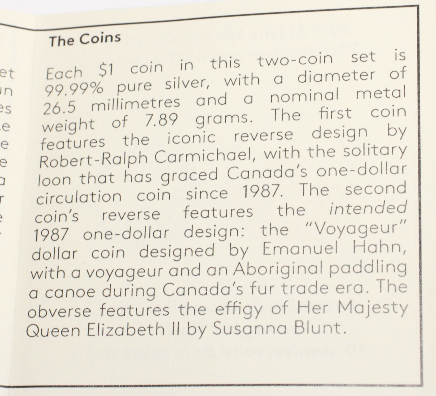 Lot 5007 2017 ROYAL CANADIAN MINT 1$ FINE SILVER 2-COIN SET