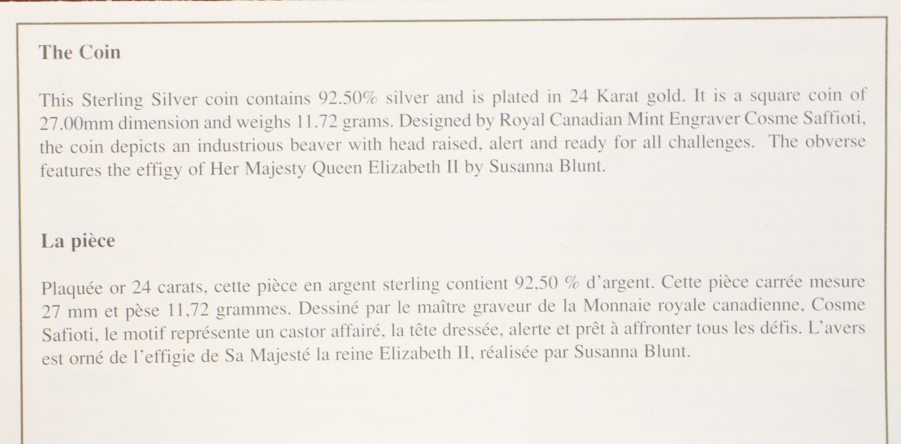 2006 $3 SQUARE STERLING SILVER COIN-THE BEAVER