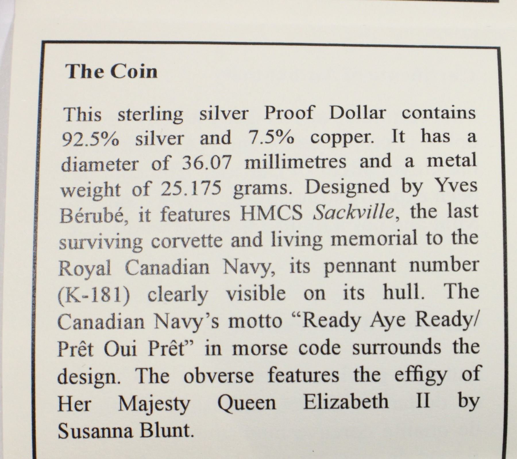 Lot 5011 2010 PROOF SILVER DOLLAR ROYAL CANADIAN MINT