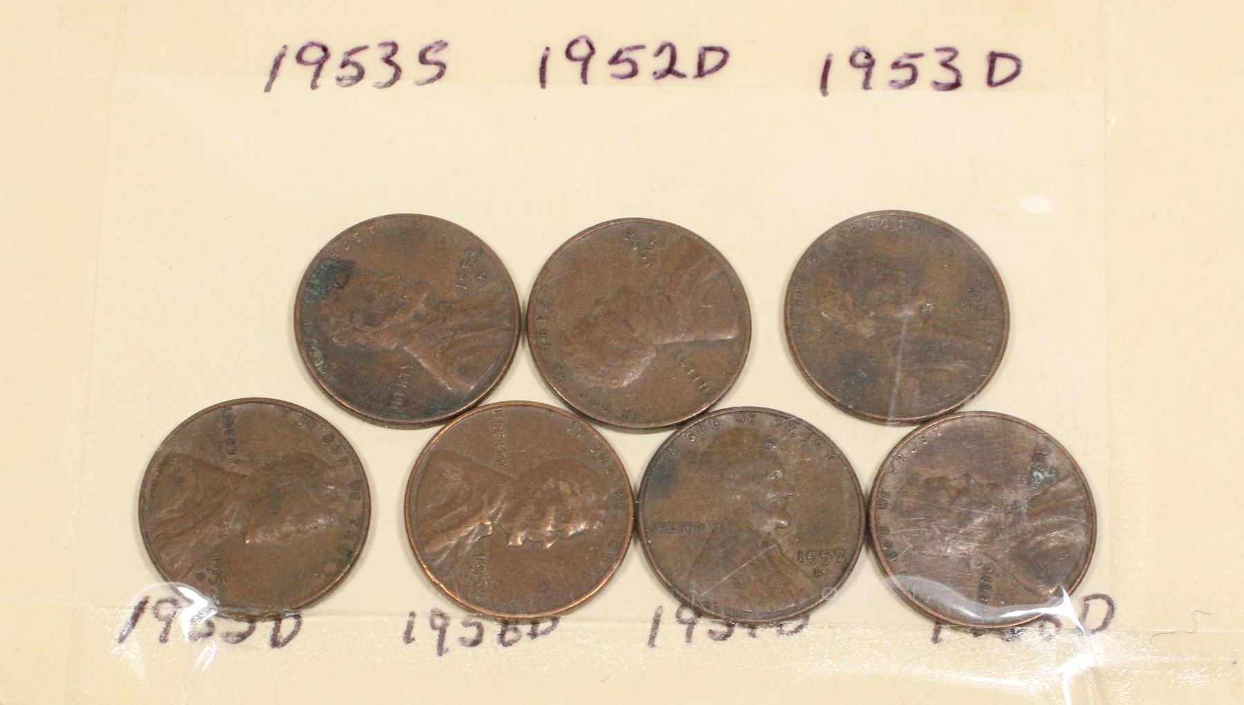 Lot 5152 1 SET 7 - 1953 - 1958 ONE CENT US COINS, CARD
