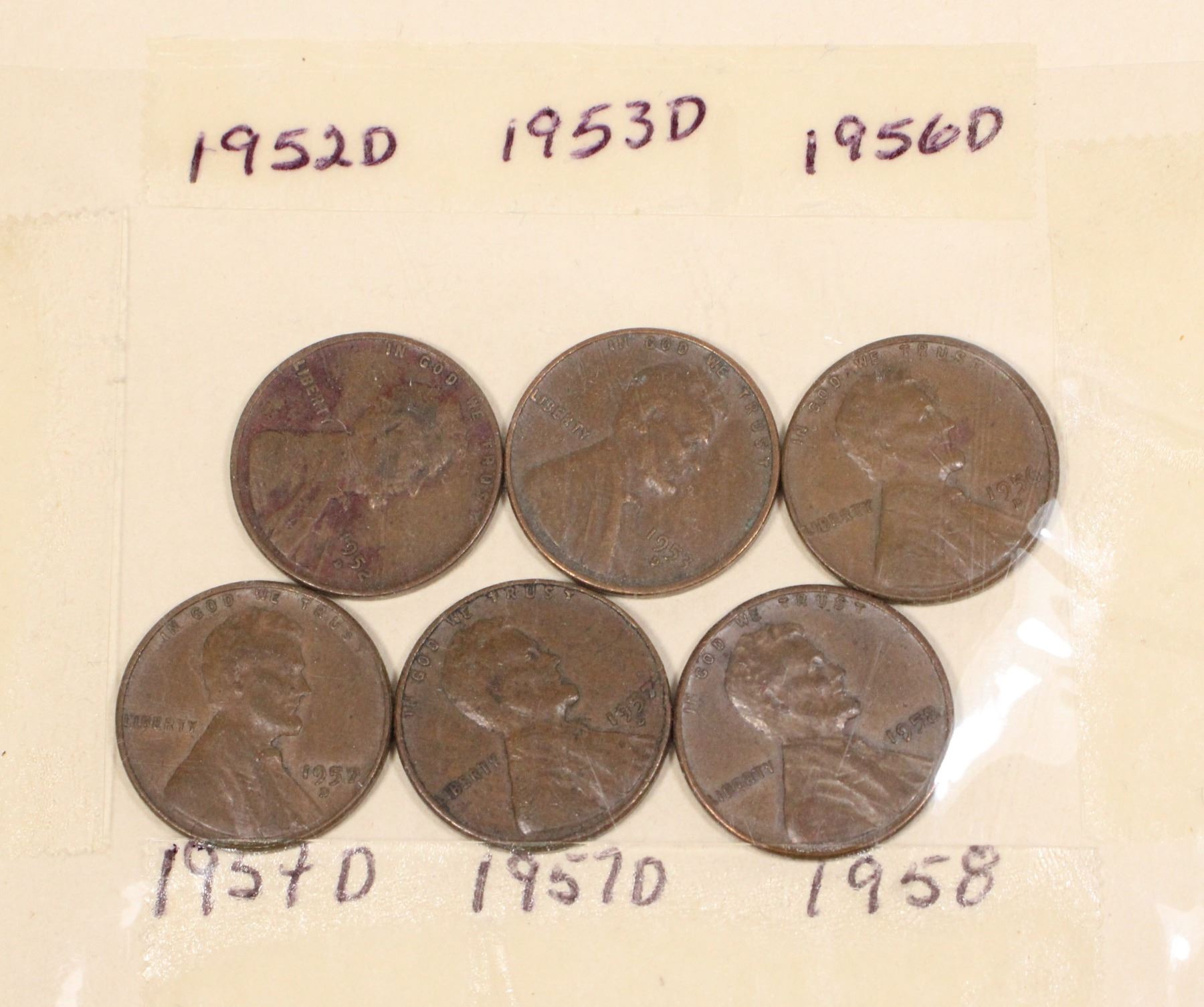 Lot 5153 1 SET 6 - 1952 - 1958 ONE CENT US COINS, CARD