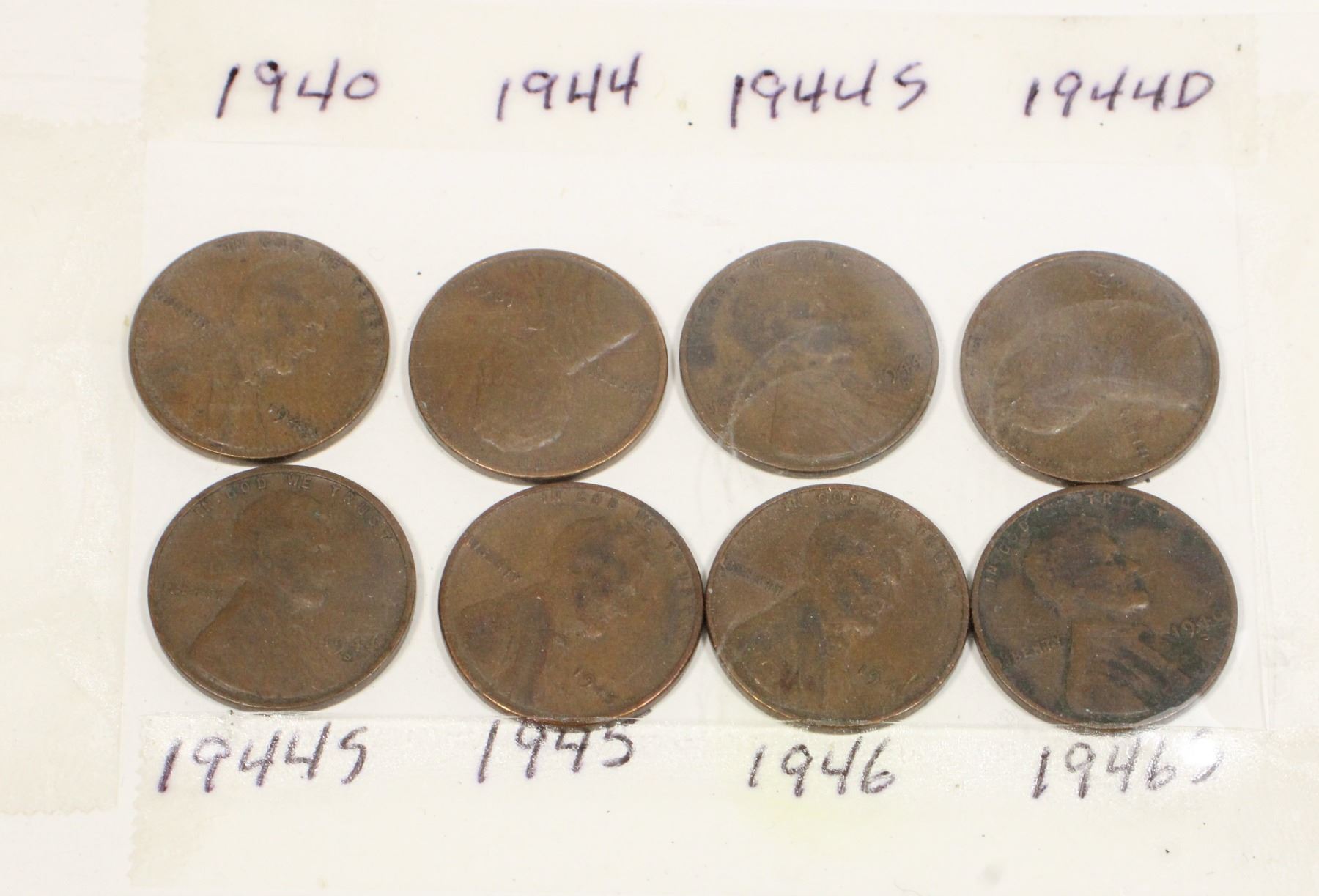 Lot 5154 1 SET 8 - 1940 - 1946 ONE CENT US COINS, CARD