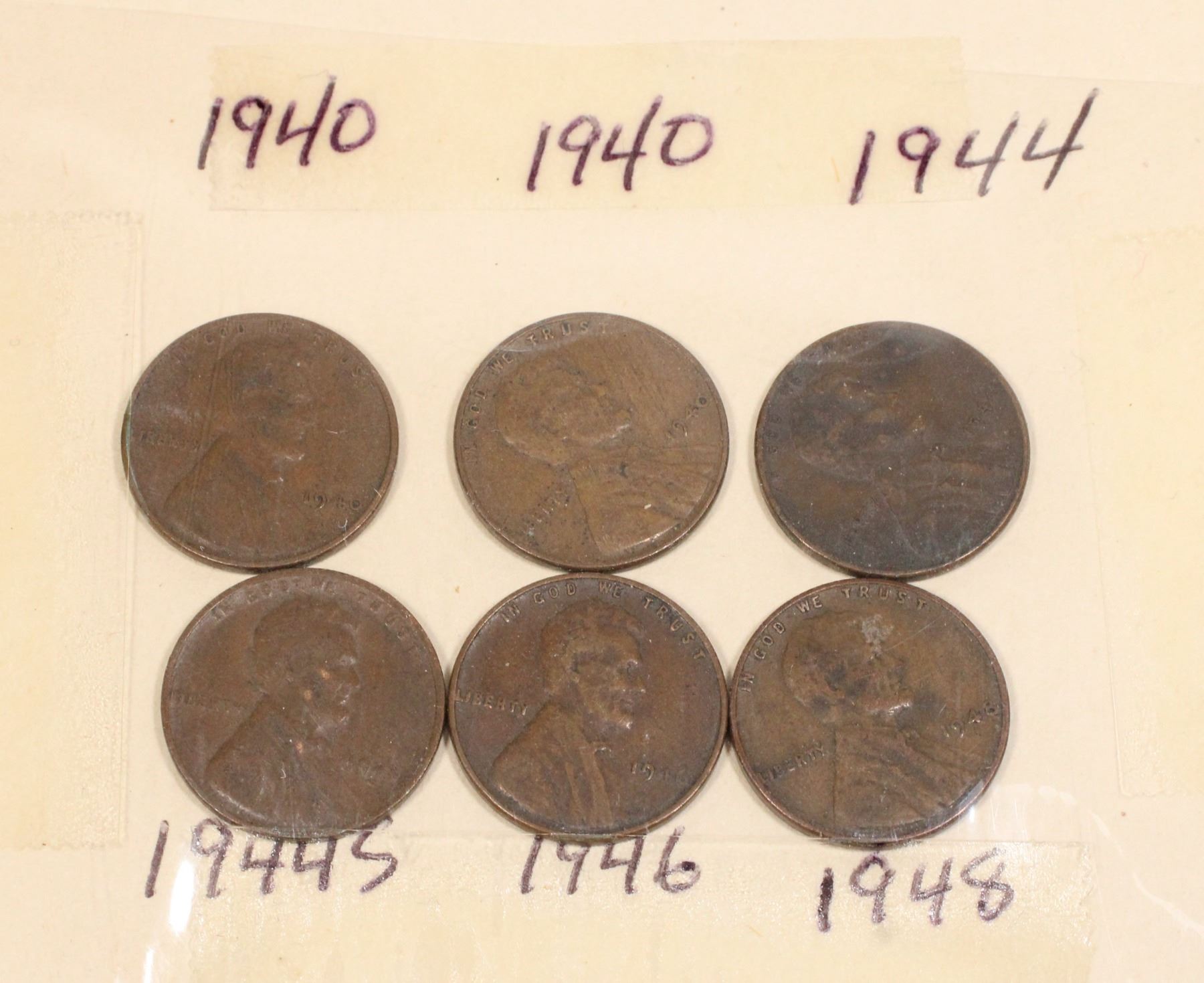 Lot 5155 1 SET 6 - 1940 - 1948 ONE CENT US COINS, CARD