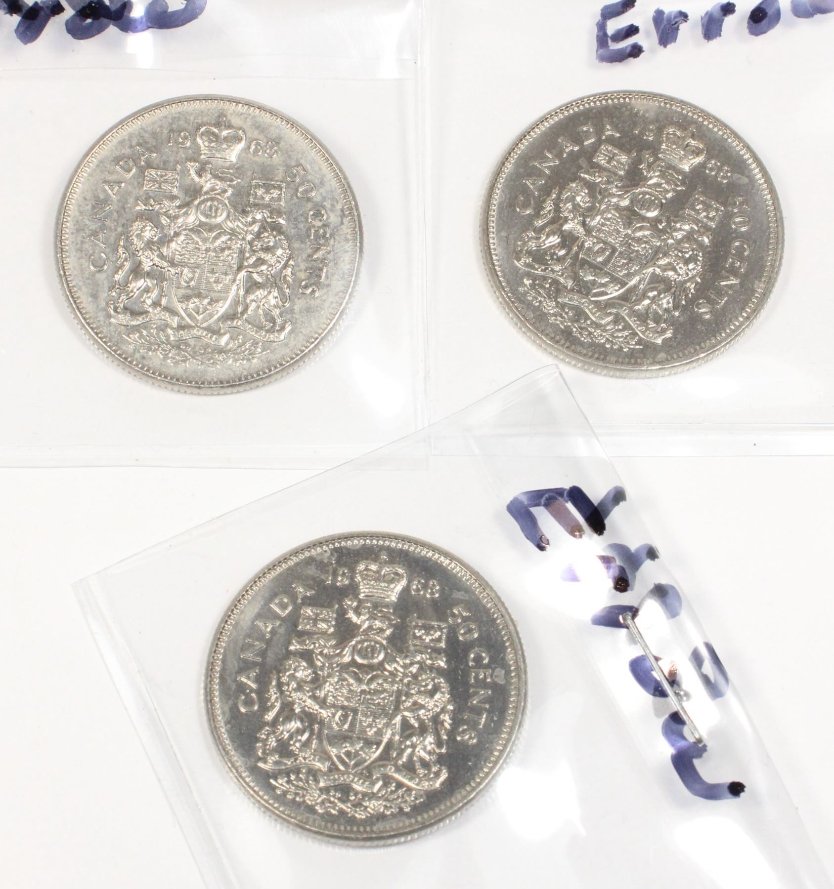 Lot 5180 1 SET 3 - 1968 .50 CENT 'ERROR' CANADIAN COINS-
