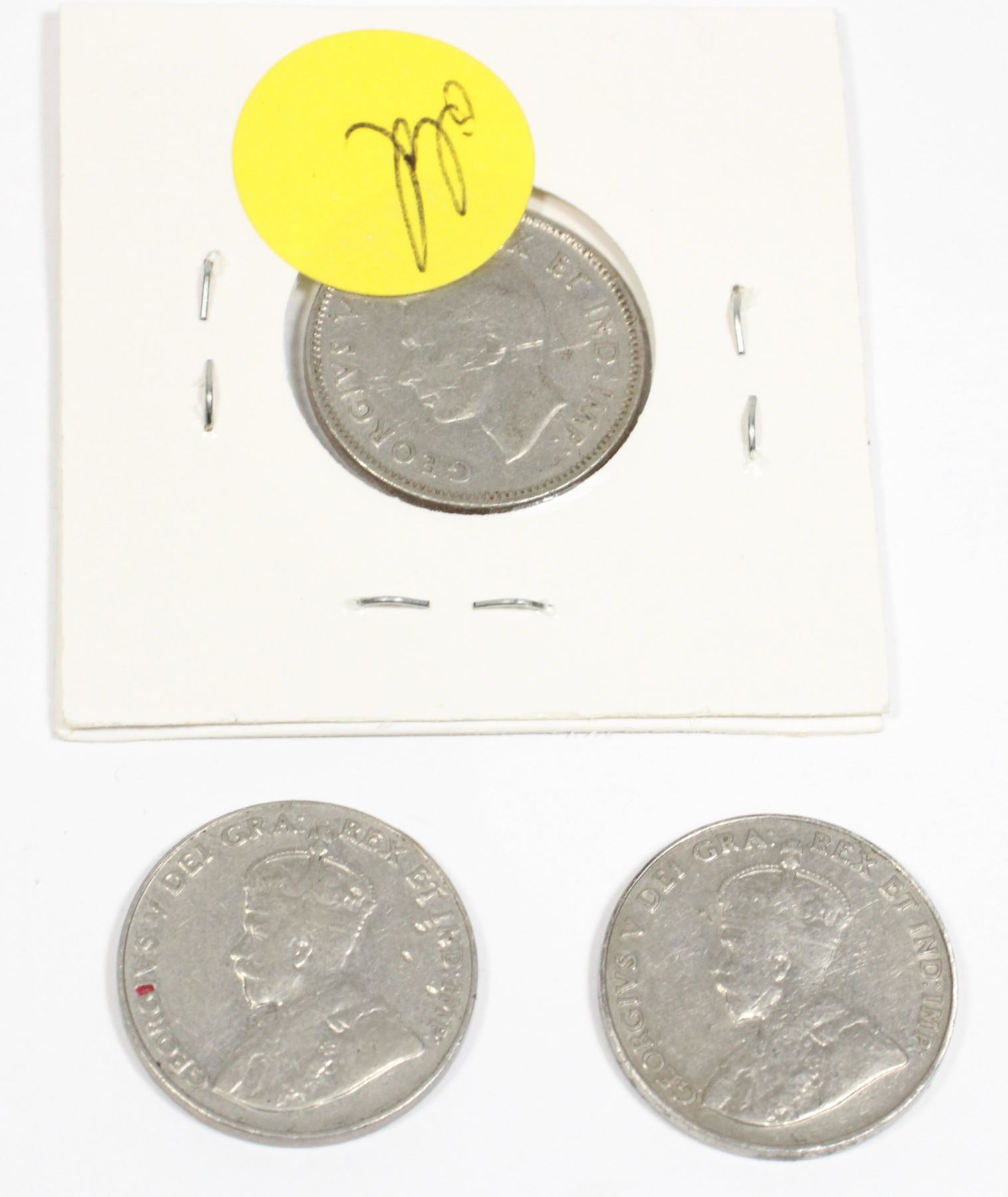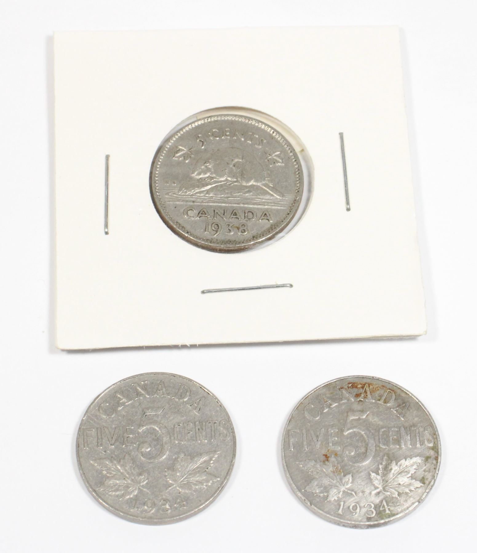 Lot 5251 TWO 1934 AND ONE 1938 CANADIAN 5 CENT COINS