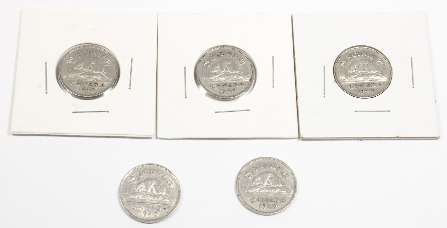 Lot 5253 FIVE 1940 CANADIAN 5 CENT COINS