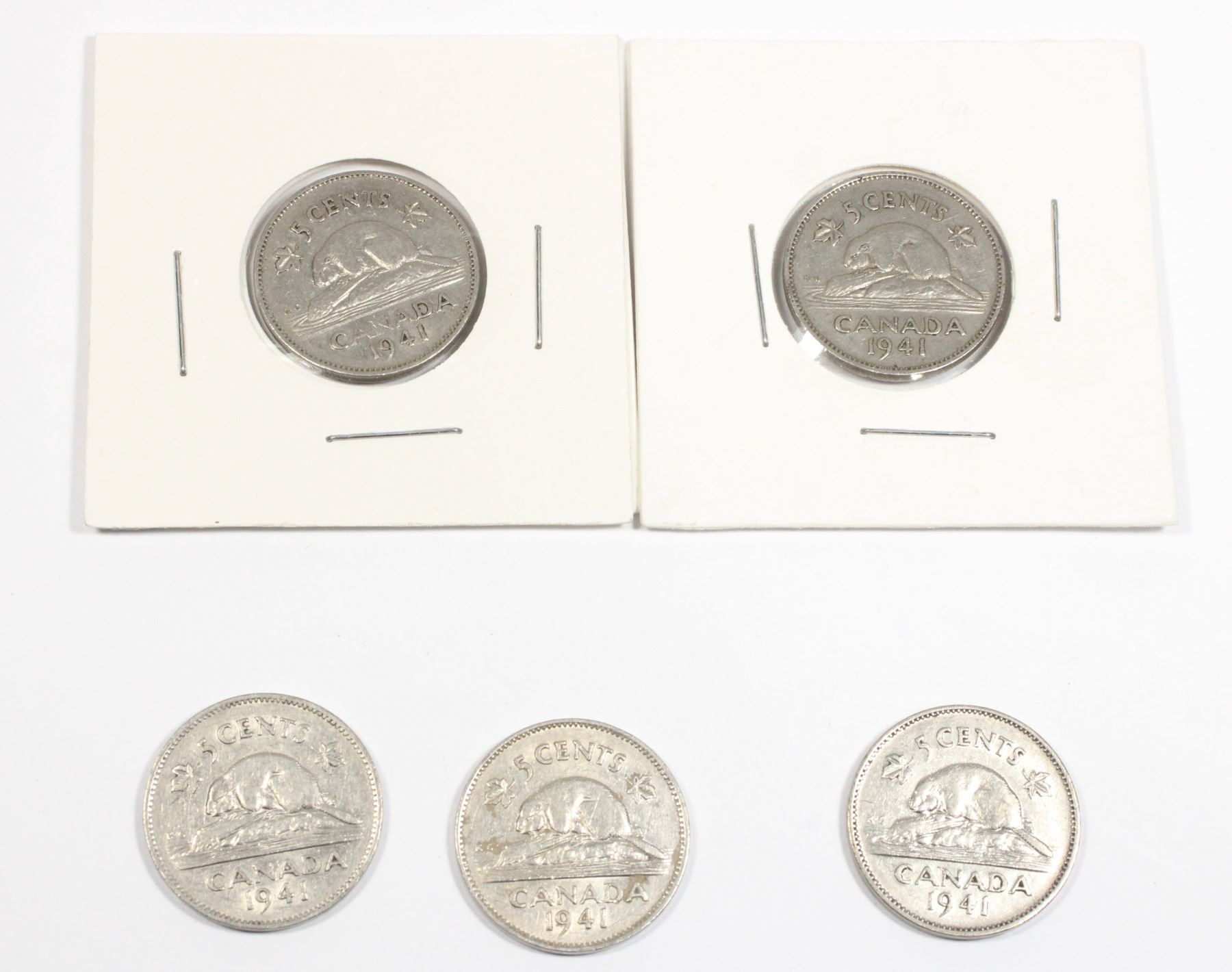 FIVE 1941 CANADIAN 5 CENT COINS