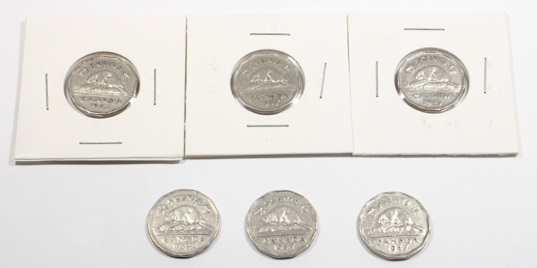 Lot 5260 SIX 1947 CANADIAN 5 CENT COINS