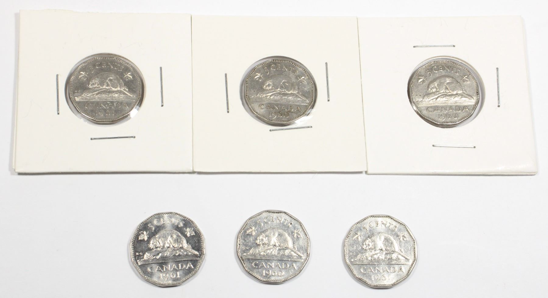 Lot 5264 THREE 1960 AND THREE 1961 CANADIAN 5 CENT COINS