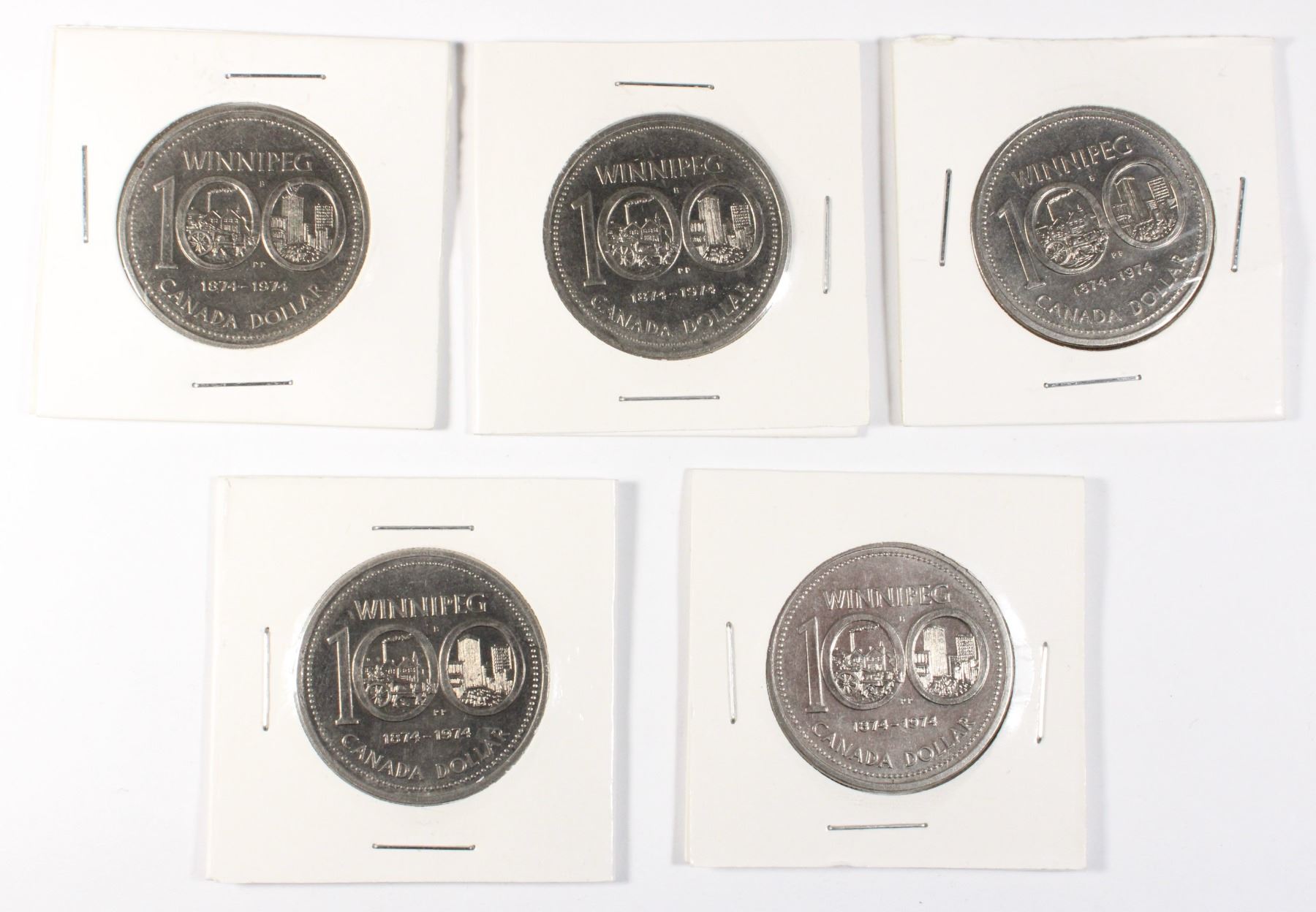 Lot 5279 FIVE 1974 CANADIAN DOLLAR COINS