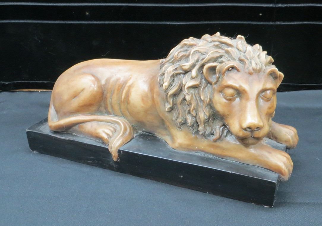Lot 30 Sleeping Lion Mounted Statue 13" long x 7" Tall