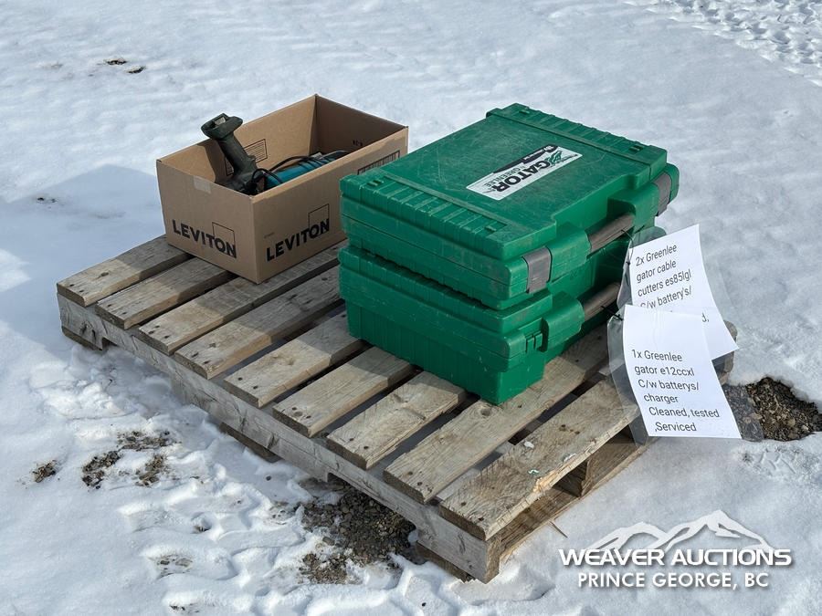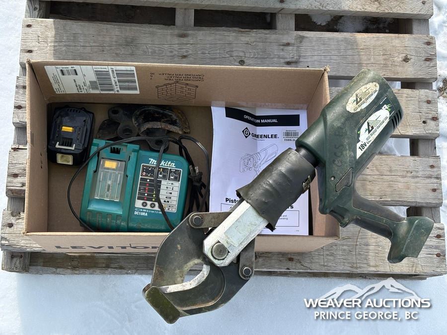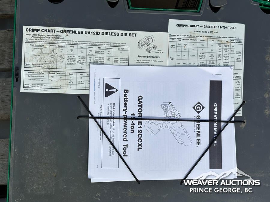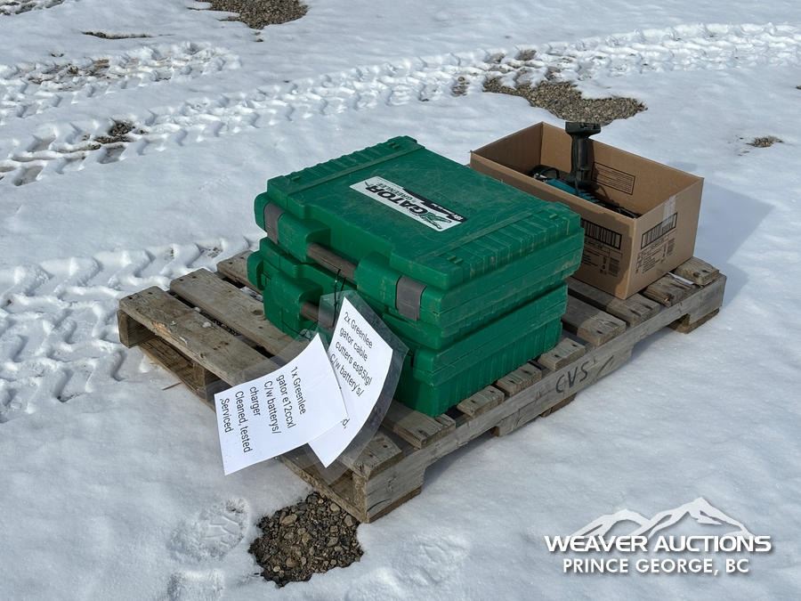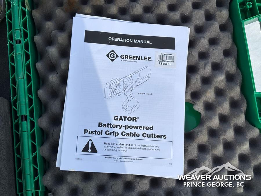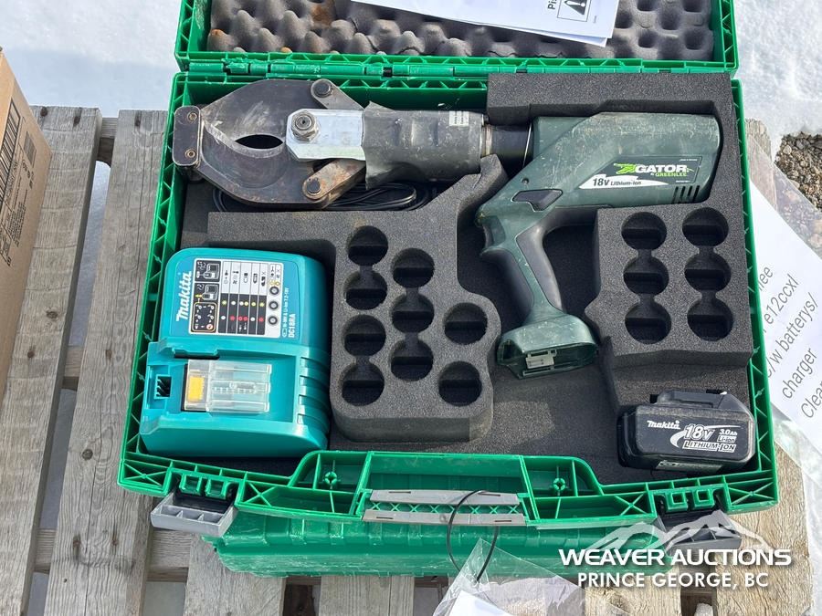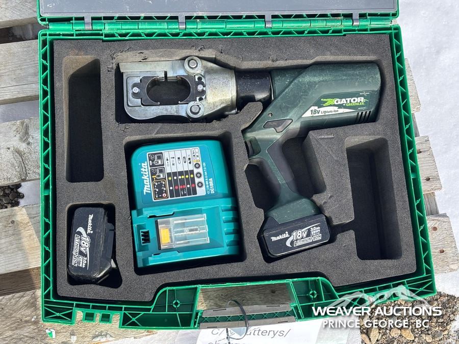 Specifications: (2) GREENLEE GATOR CABLE CUTTERS ES85LGL (1) GREENLEE GATOR CRIMPER E12CCXL (4) BATTERIES (3) BATTERY CHARGERS
