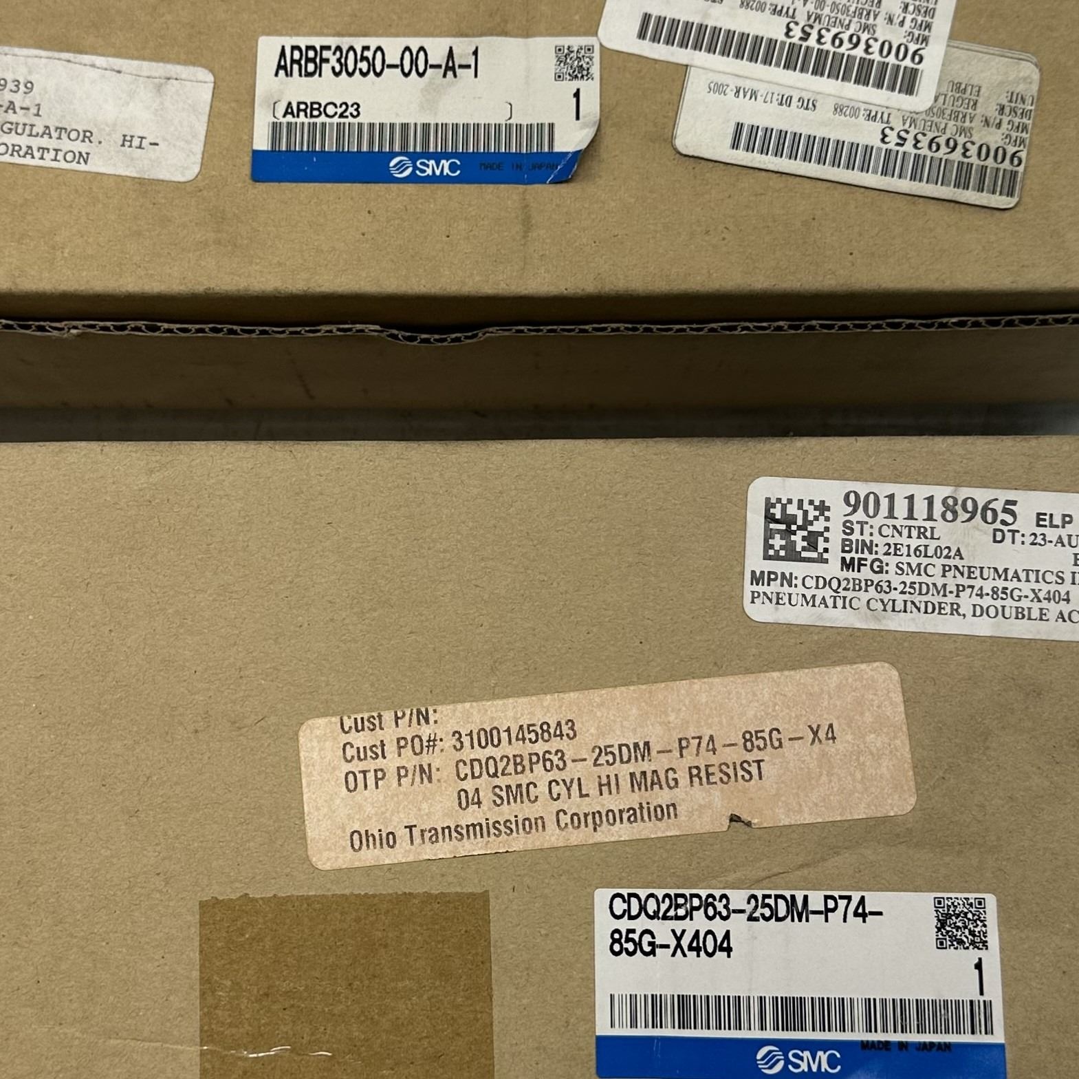 Lot of (2) SMC Items #ARBF3050-00-A-1 & #CDQ2BP63-25DM-P74-85G-X404