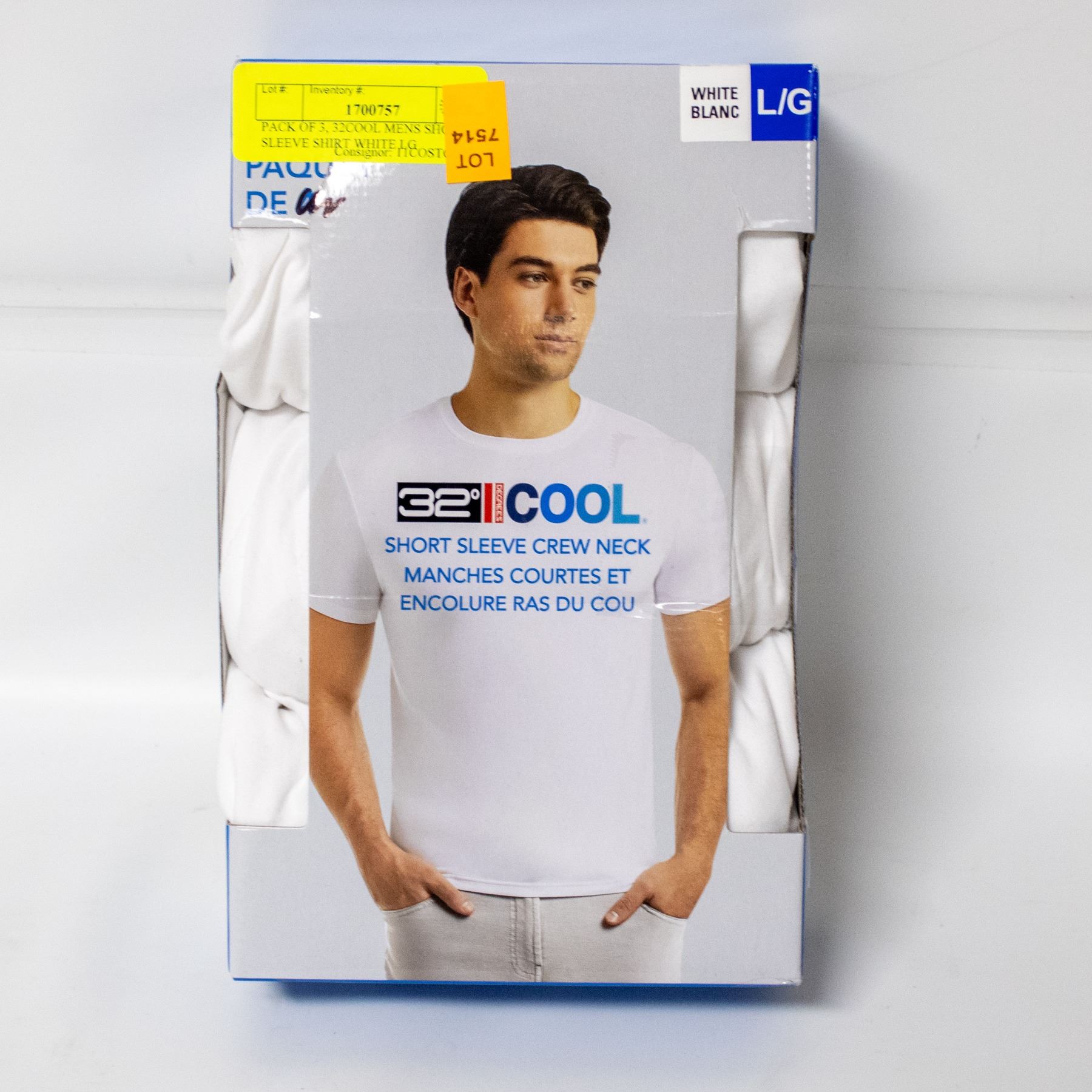 Lot 7514 PACK OF 3, 32COOL MENS SHORT SLEEVE SHIRT WHITE LG