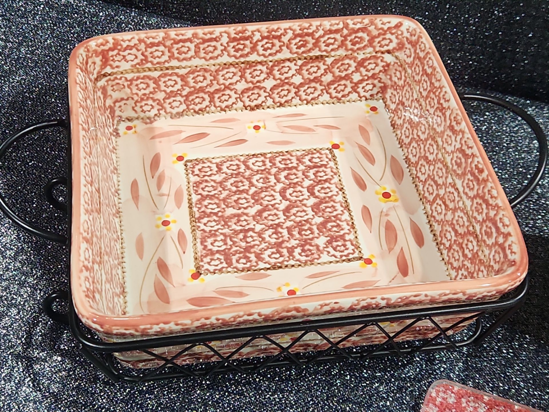 Temp-Tations By Tara Old World Cranberry , Baking Dish, Metal Serving Rack, Ceramic Trivet, Small Nesting Bowl