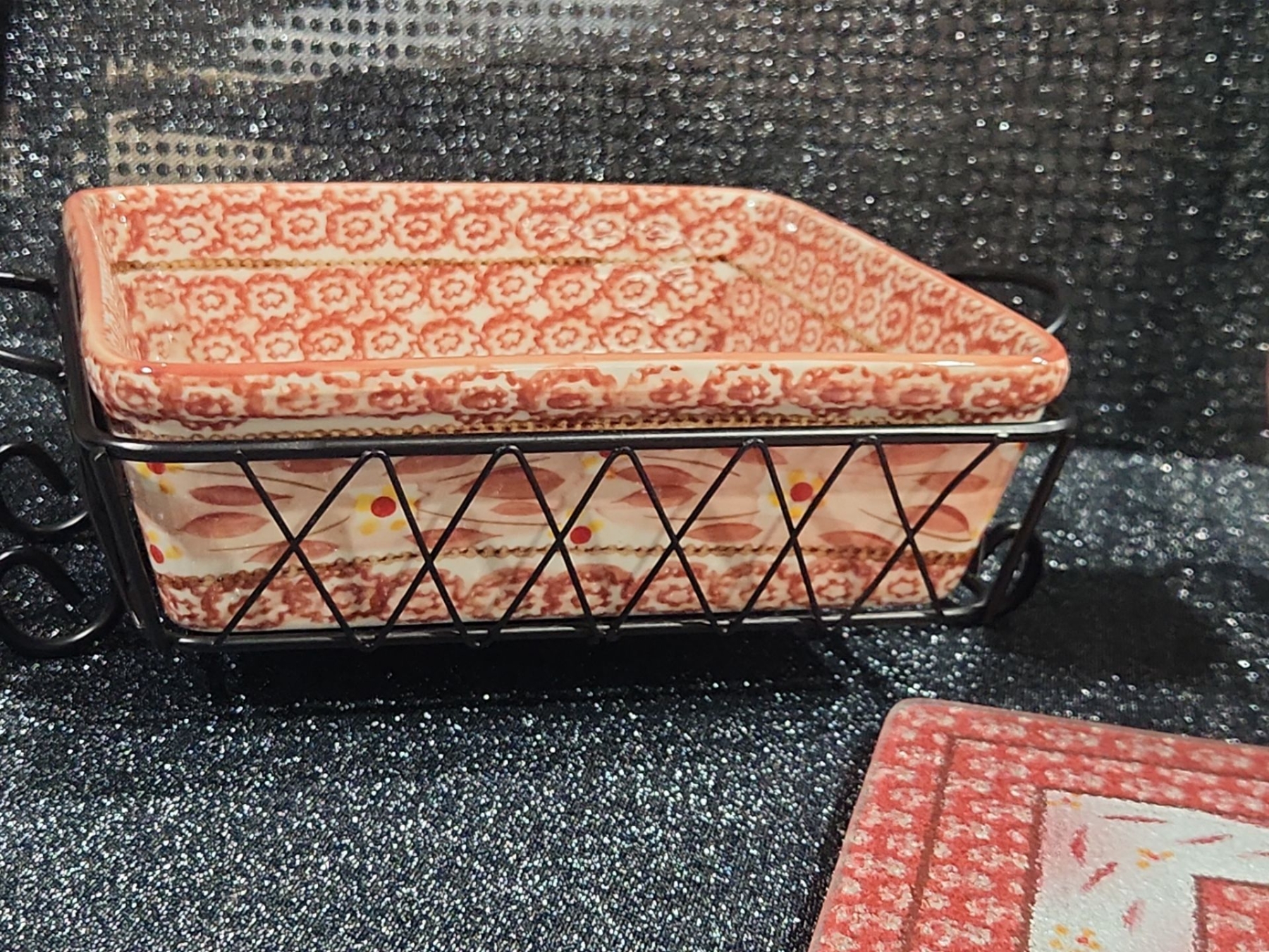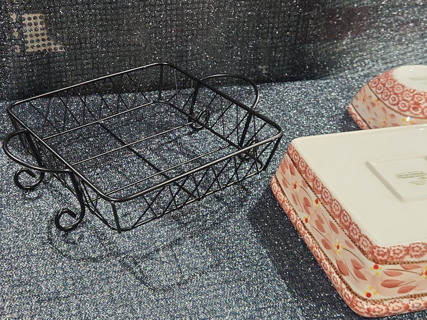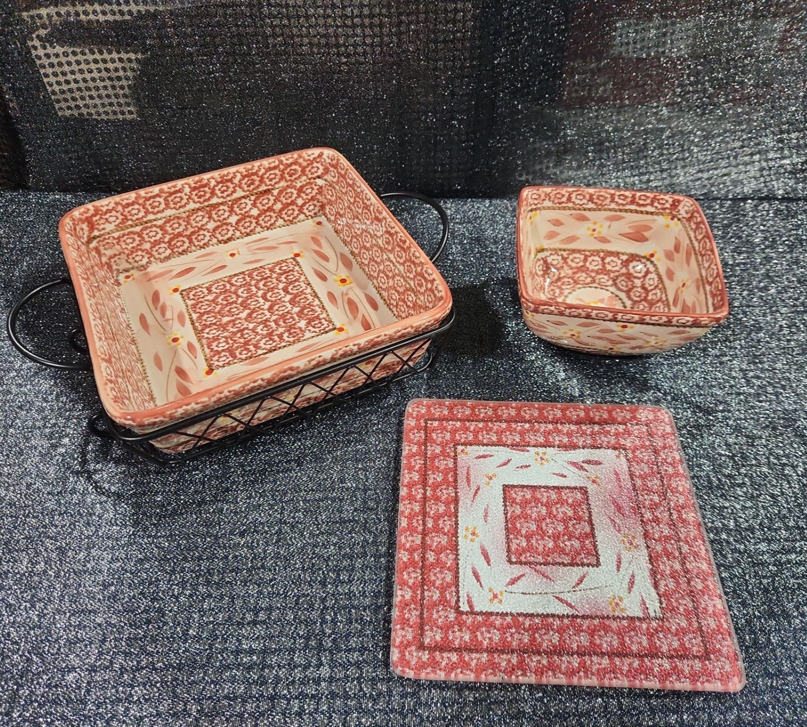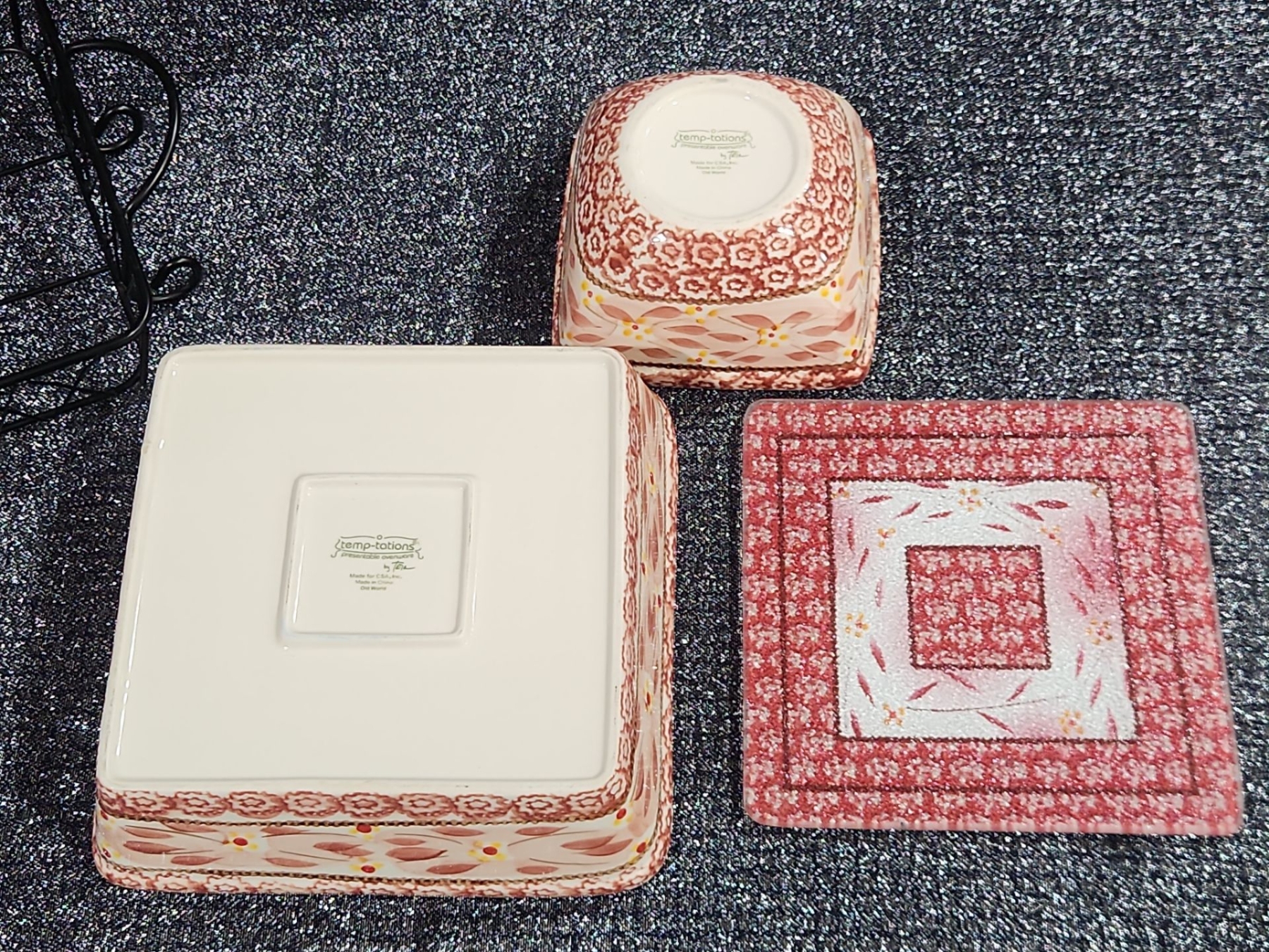 Lot 40 Temp-Tations By Tara Old World, Baking Dish, Metal Serving Rack, Ceramic Trivet, Small Nesting Bowl.