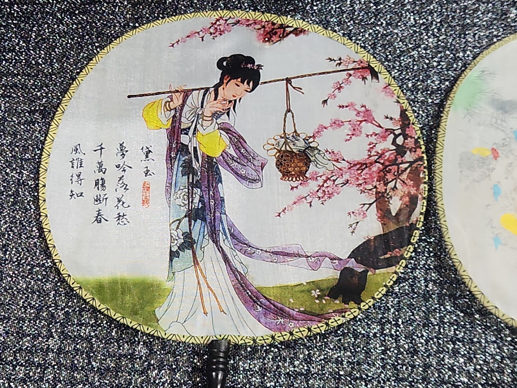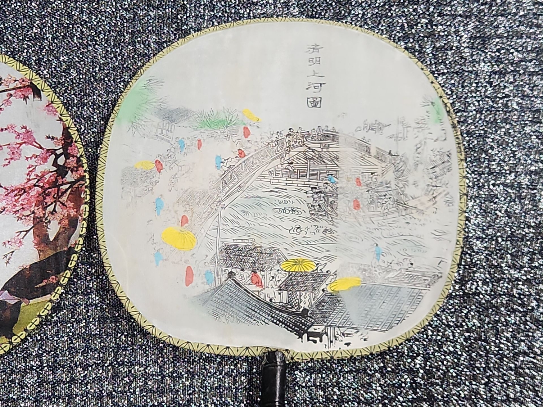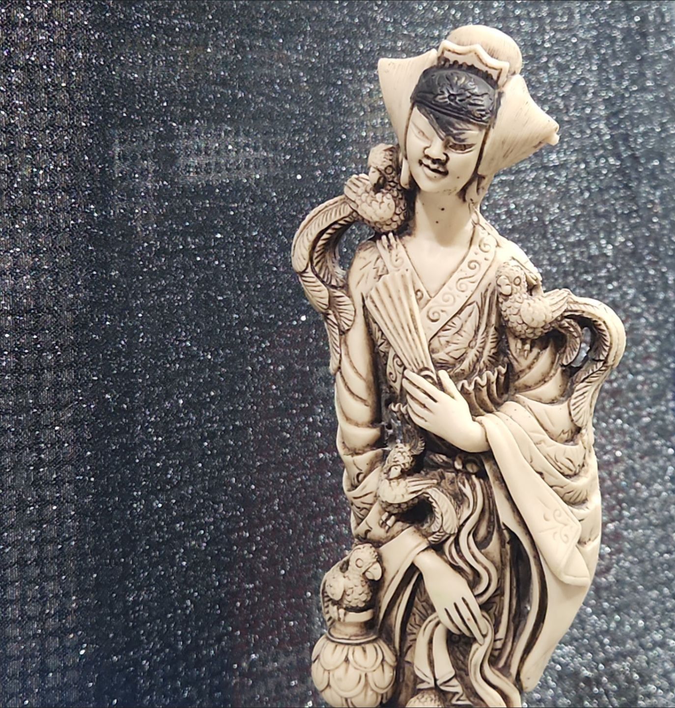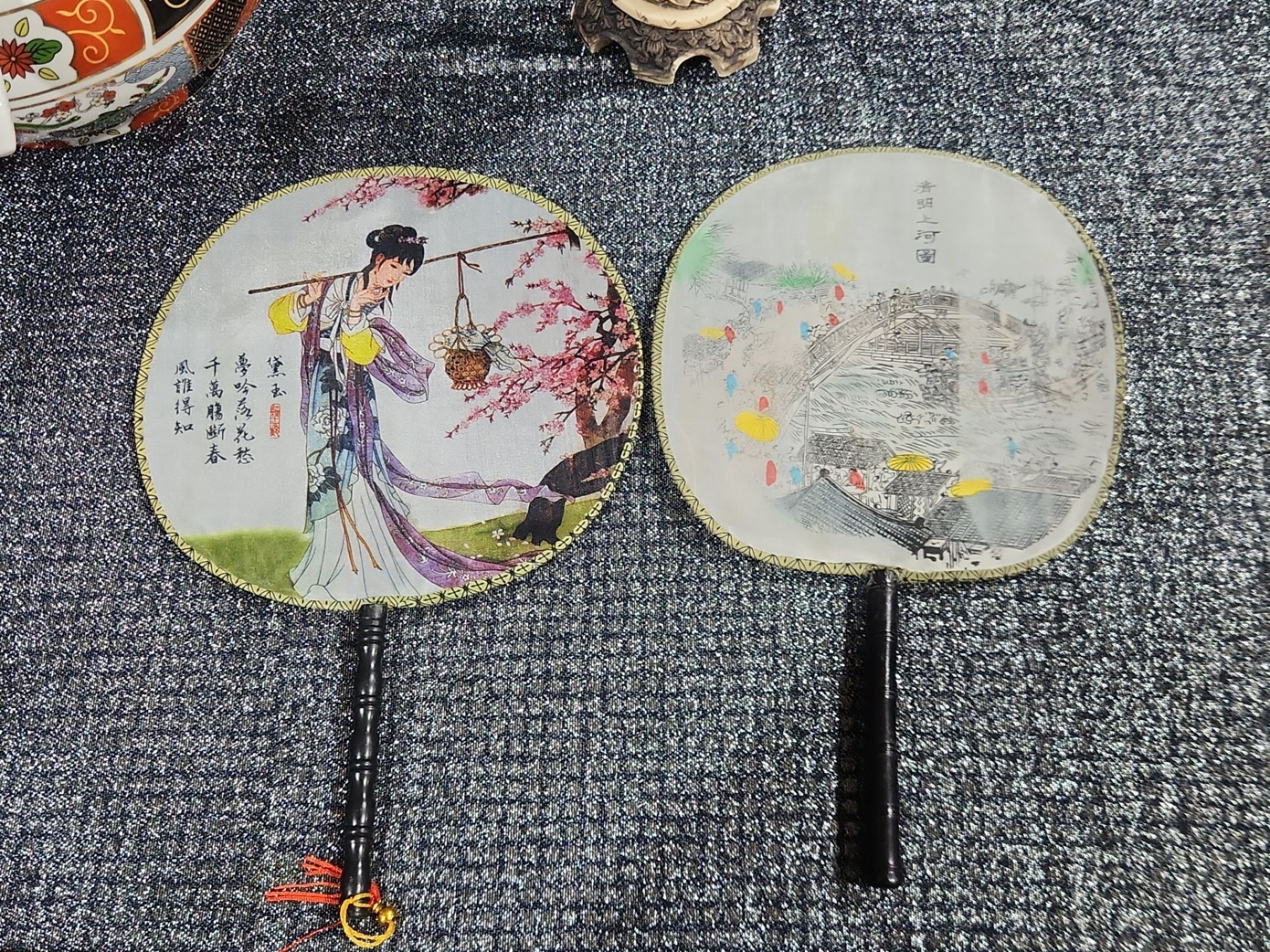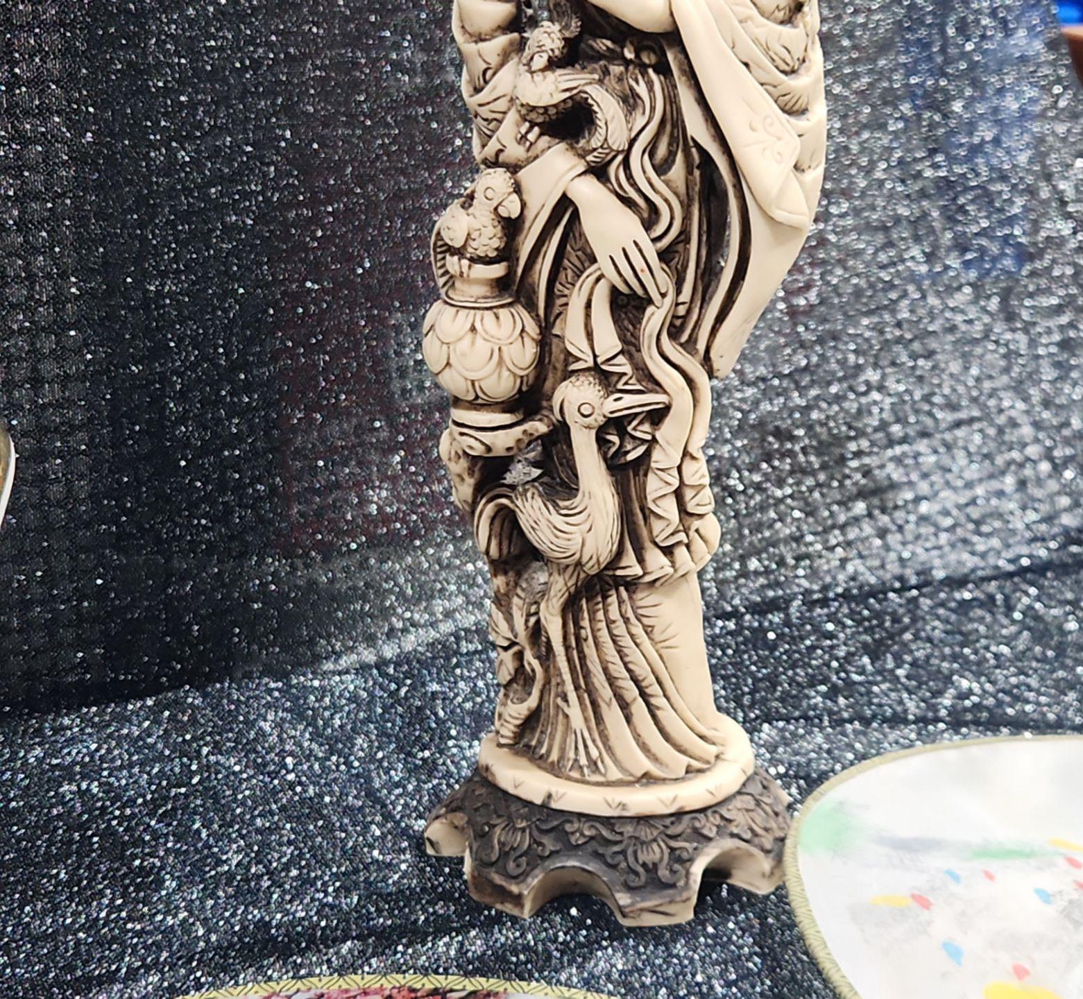 Japanese Porcelain Lidded Tureen & Ladle In The Imari Style, Two Round Chinese Ancient Hand Fan, Carved Resin Asian-style figurine
