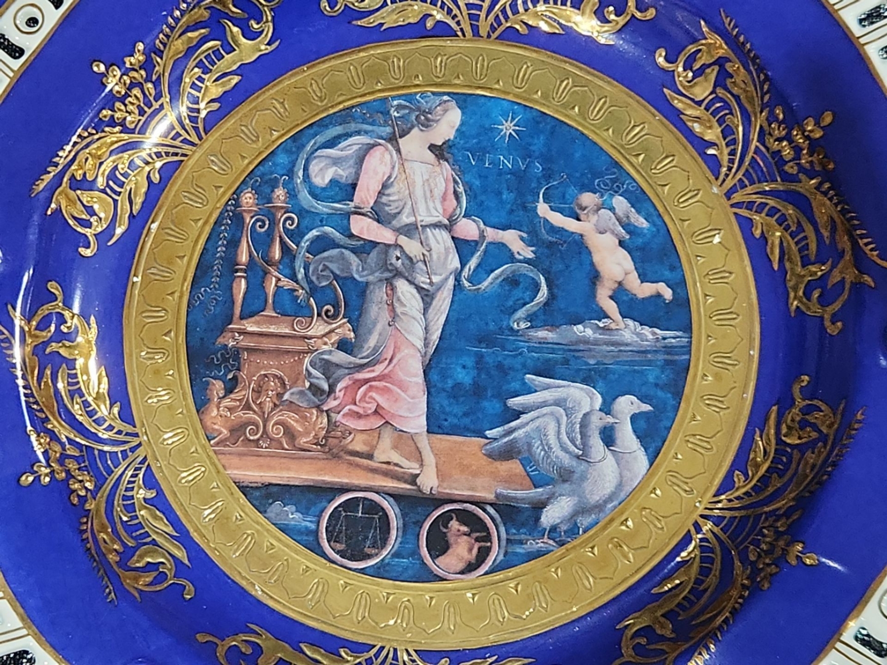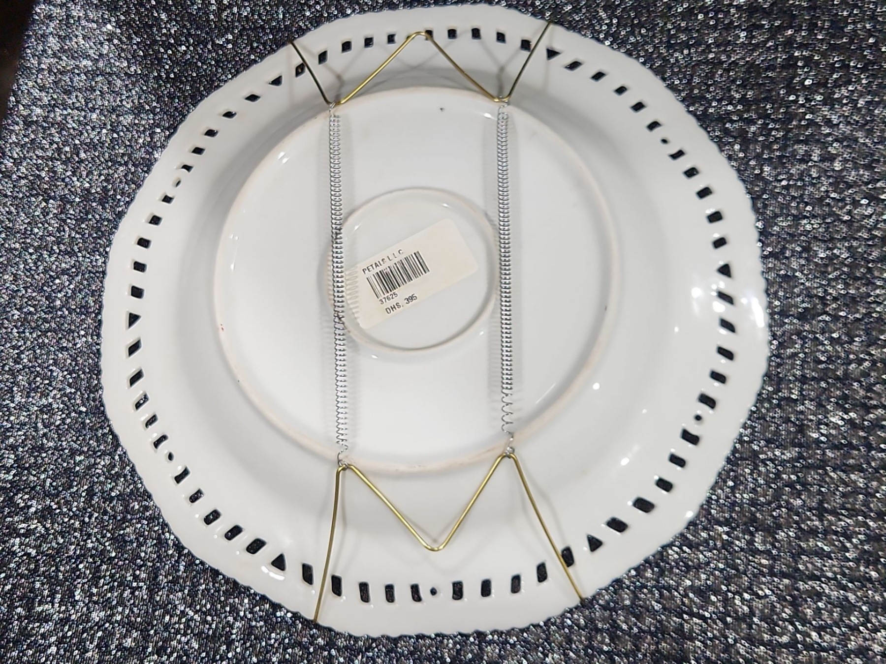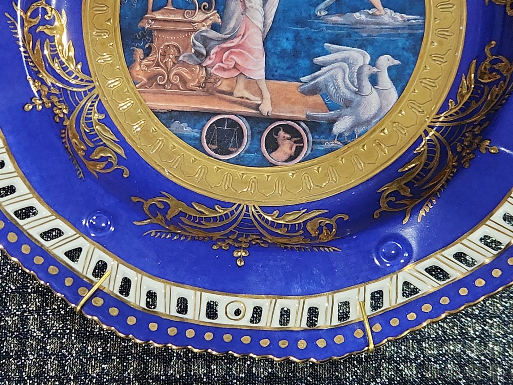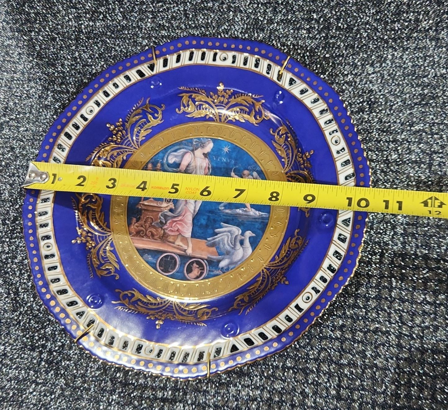 Decorative Plate, Crystal Stemmed Glasses, Royal Albert “Enchantment” Teacup & Saucer , Harry & David Chicken-Shaped Ceramic Spreaders,