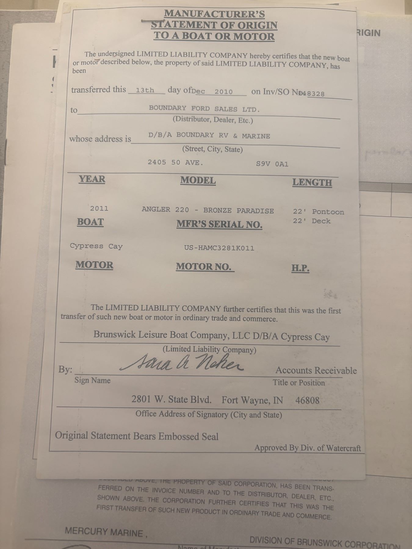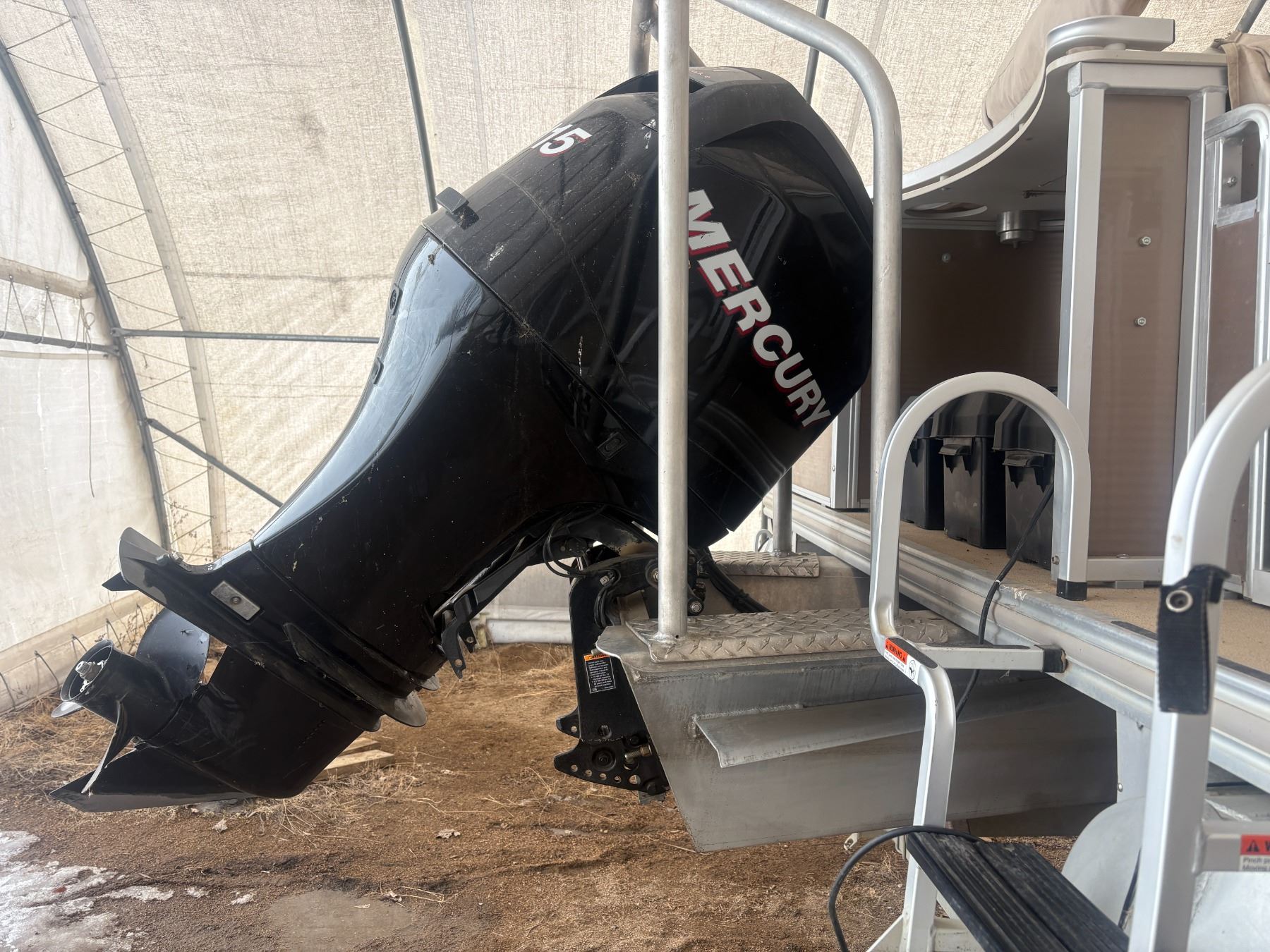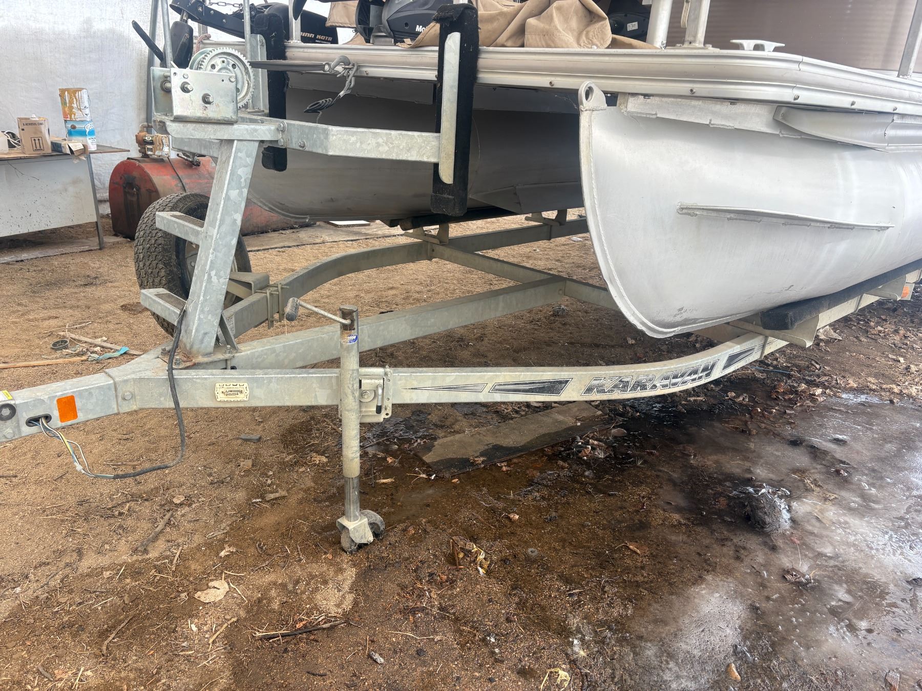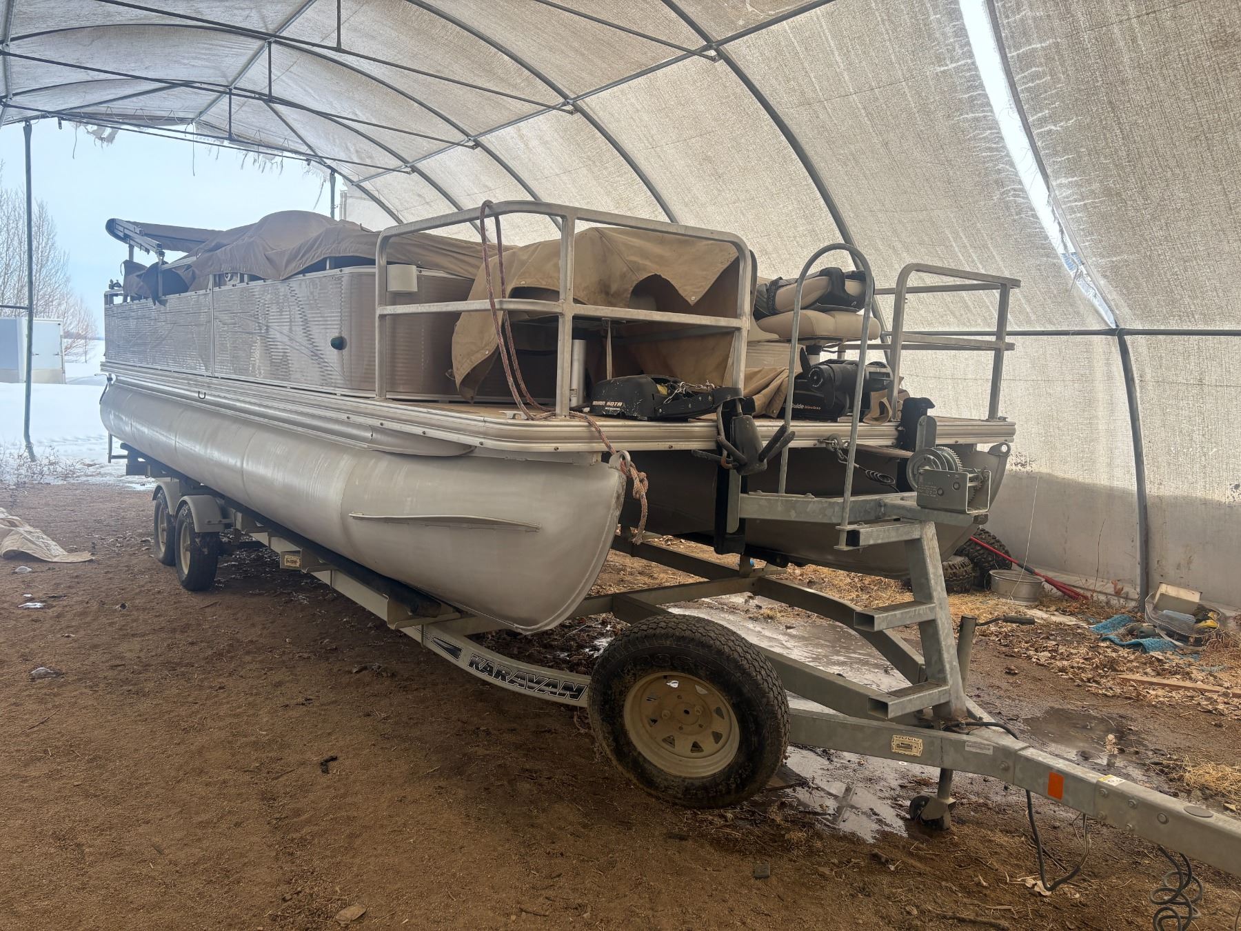 One Owner- 2011 Angler 220 22' Double Pontoon Boat c/w 115 Mercury, Trolling motor, elec. anchor, Fish Finder, Portable toilet, Seats 12, 12 life jackets, 2011 Caravan Tandem Axle Trailer, Spare tire, Boat cover, Shedded, 130 hrs. One Owner Unit