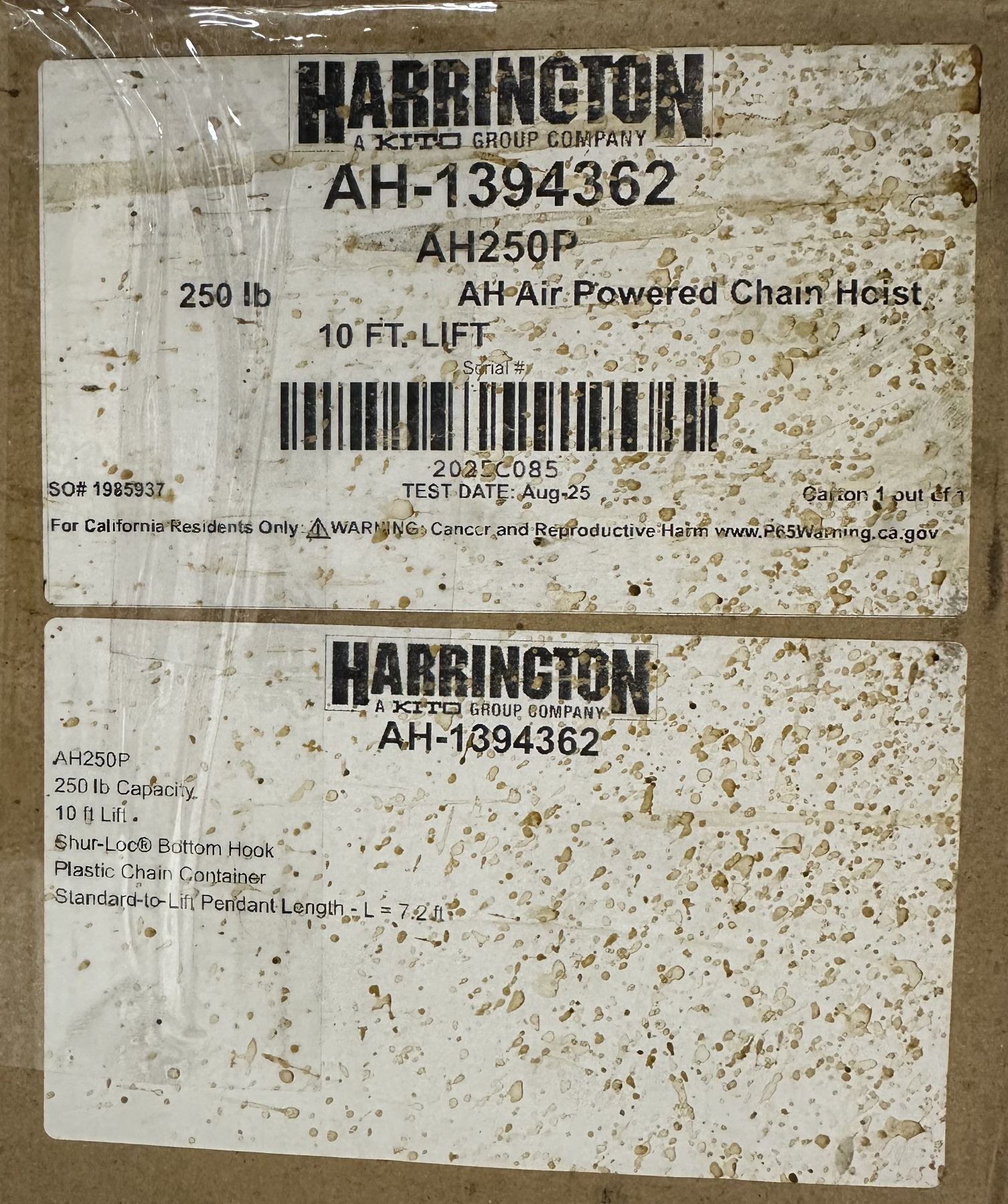 Harrington #AH-1394362 Air Powered Chain Hoist