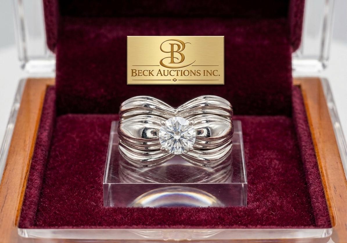 Elegant 18K White Gold Ring featuring a 0.6ct diamond. Weighs 9.61 grams and is sized US 7. A solid, beautifully crafted piece with bright sparkle and substantial gold presence.