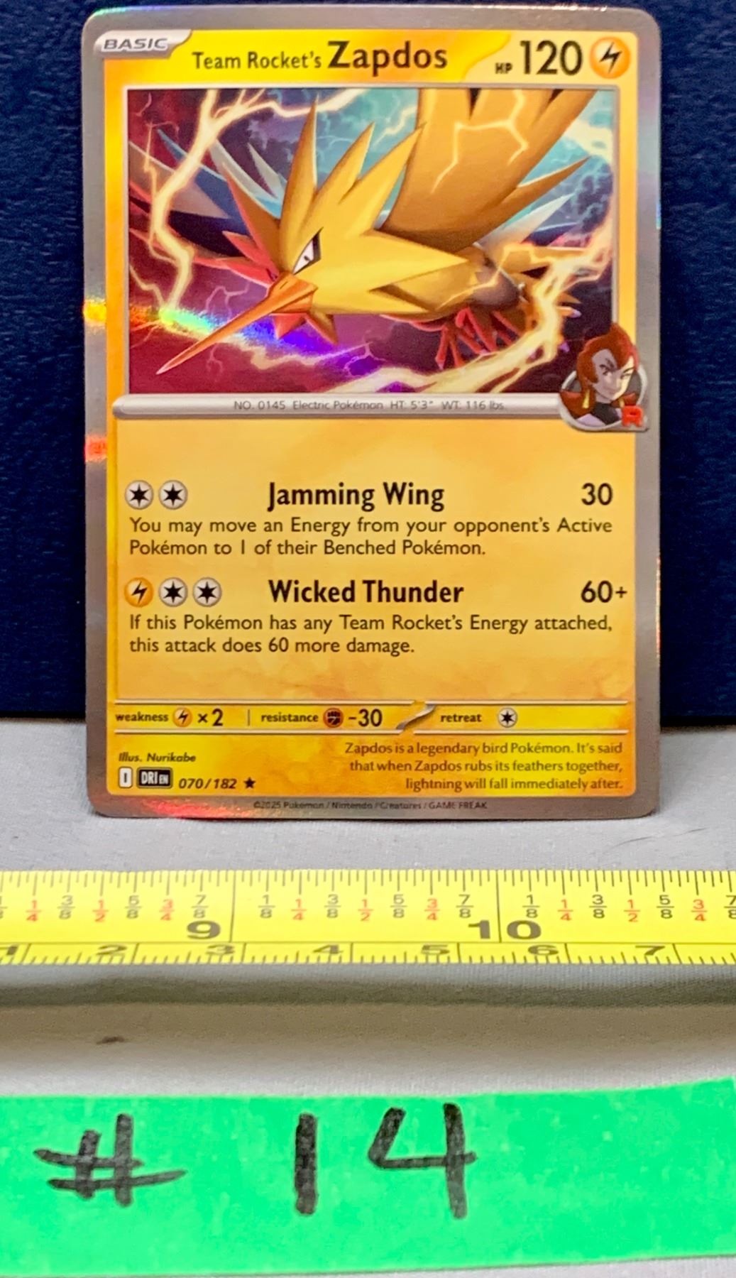 Lot 14 Pokemon Team Rockets Zapdos #070/182 Holo Card Mint!